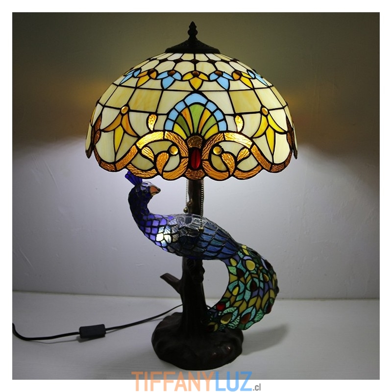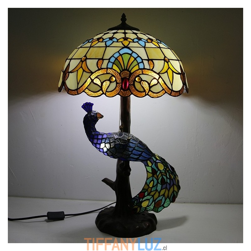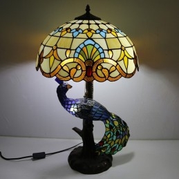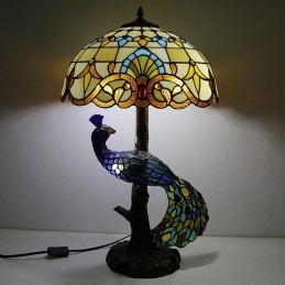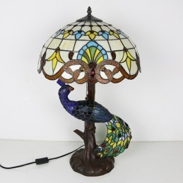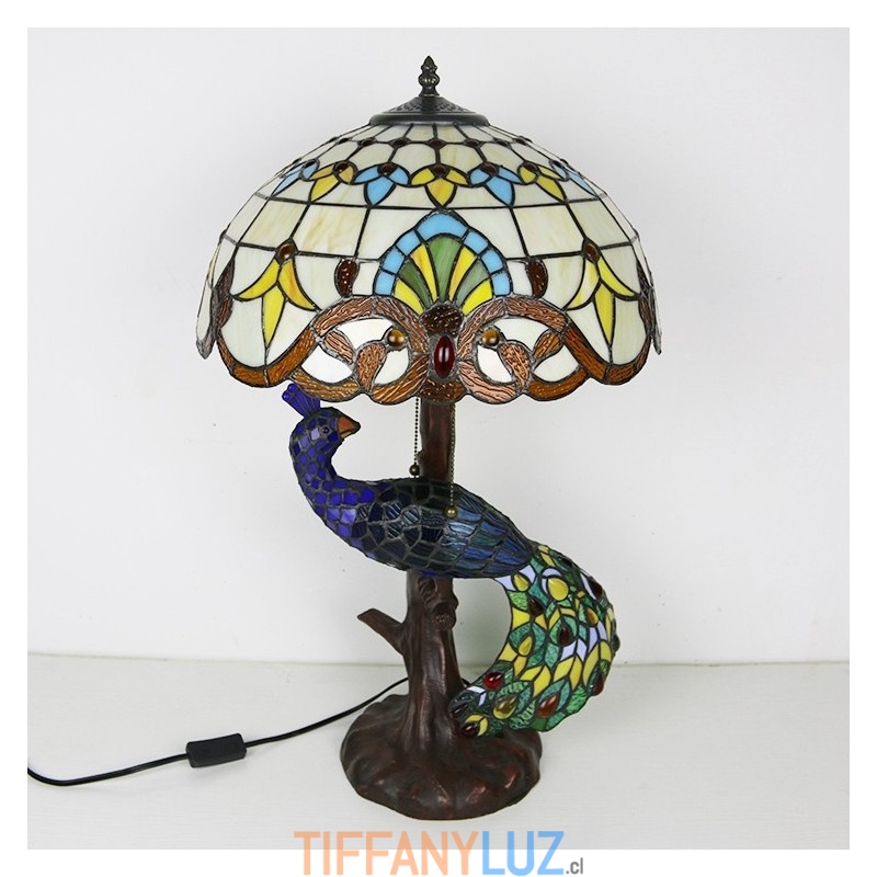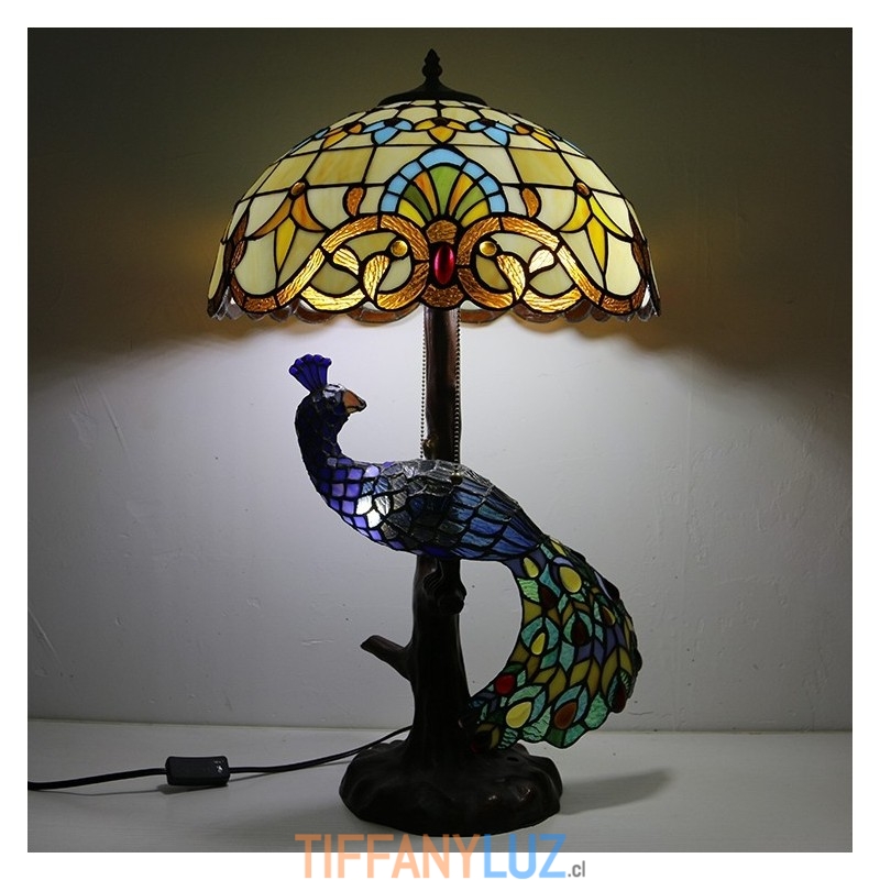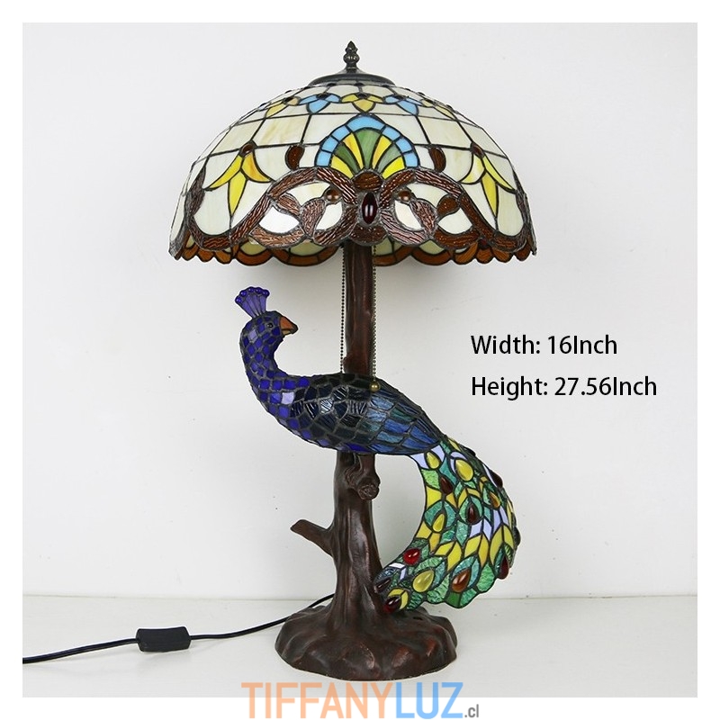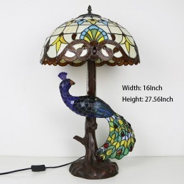 Lámpara de escritorio estilo Tiffany con pantalla de vidrio de colores barroco de 16 pulgadas y base de pavo real y árbol de vidrio