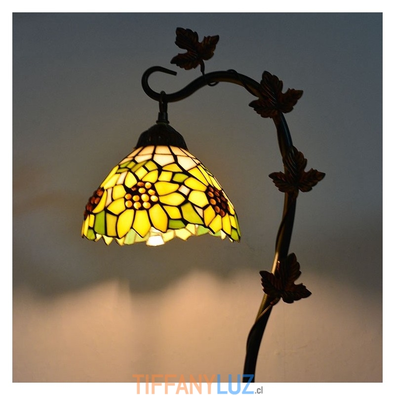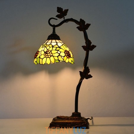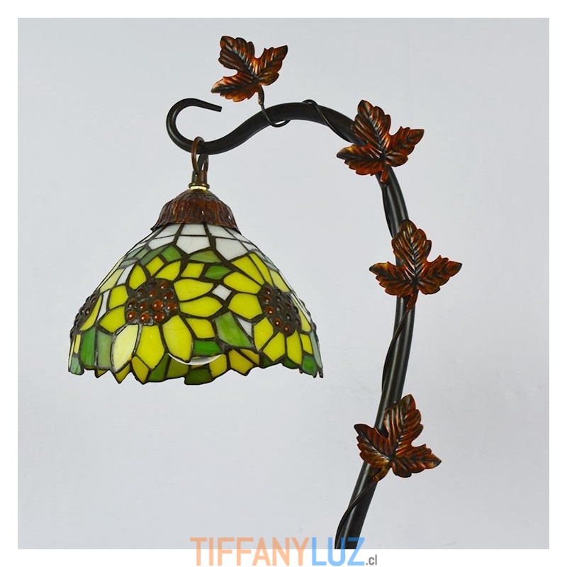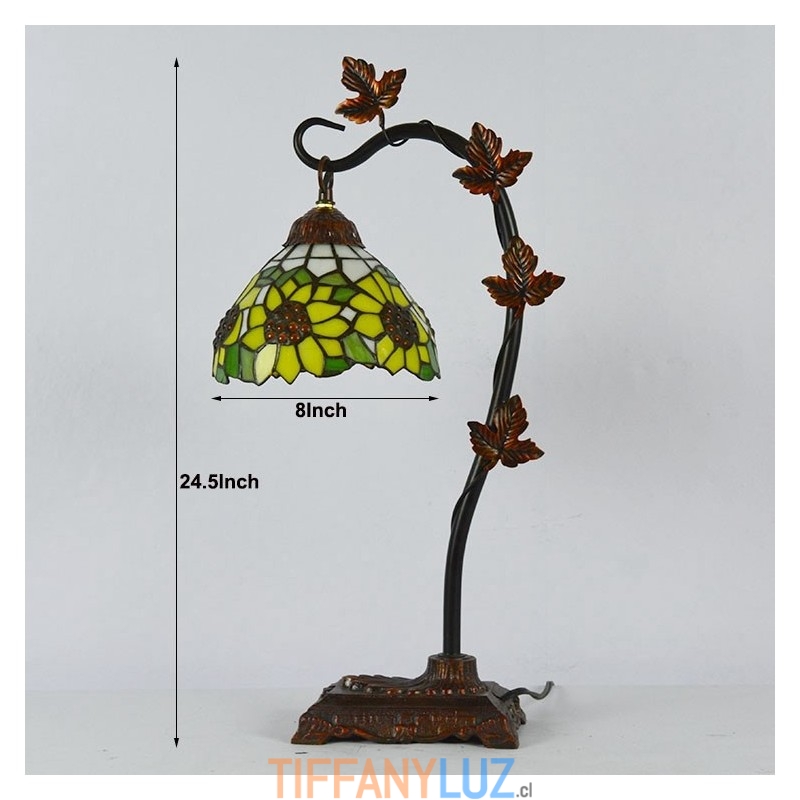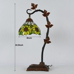 Lámpara de mesa Tiffany para decoración del hogar, pantalla de vidrio tintado con forma de girasol, luz de escritorio, base de metal con forma de enredadera Morning Glory