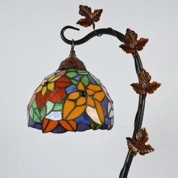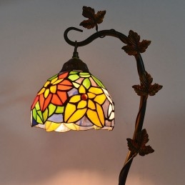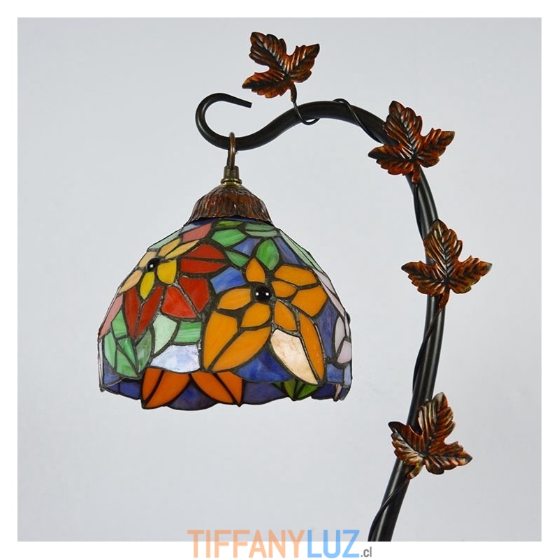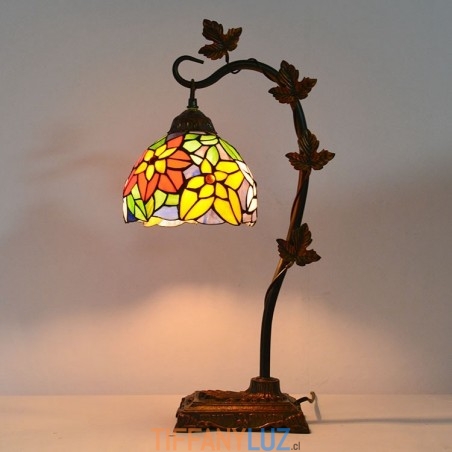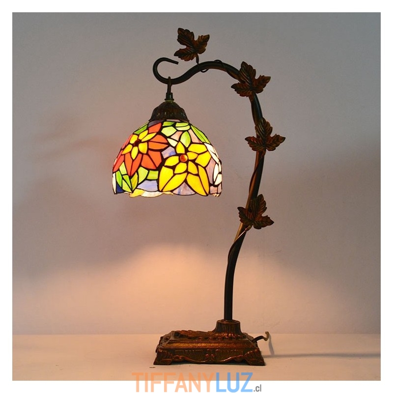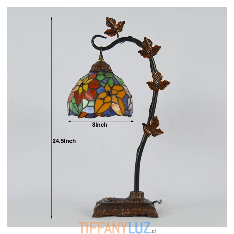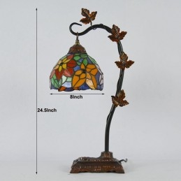 Lámpara de mesa de vidrio de colores estilo Tiffany de 8 pulgadas, luces de escritorio hechas a mano con base de metal de enredadera Morning Glory