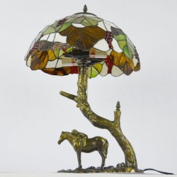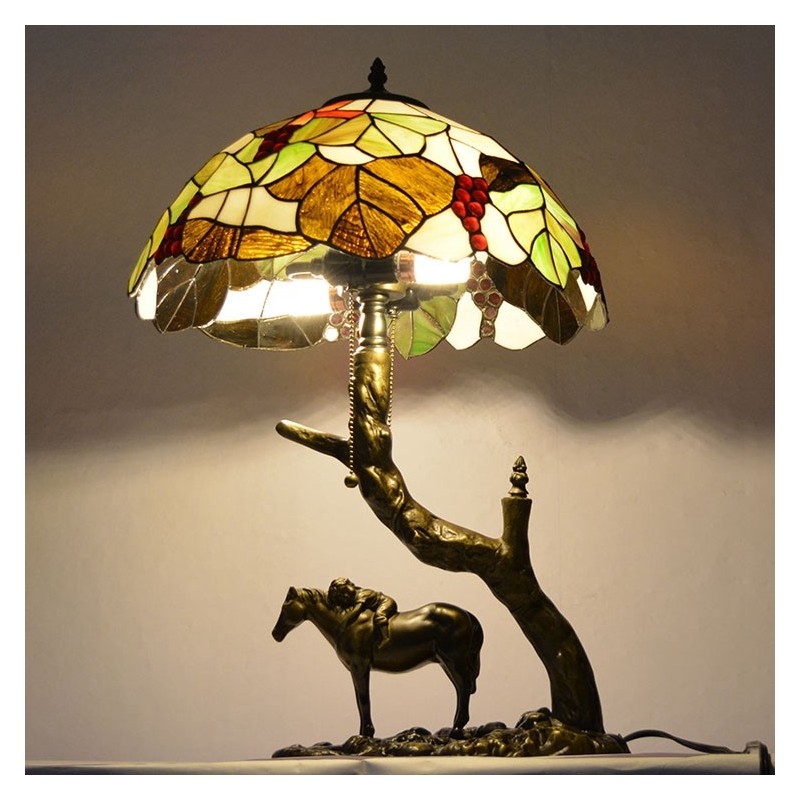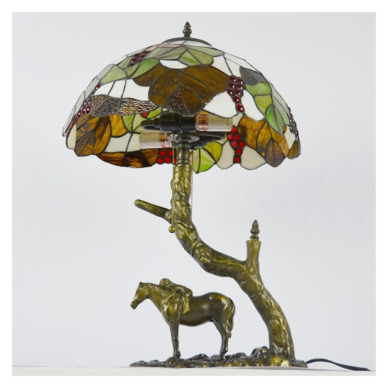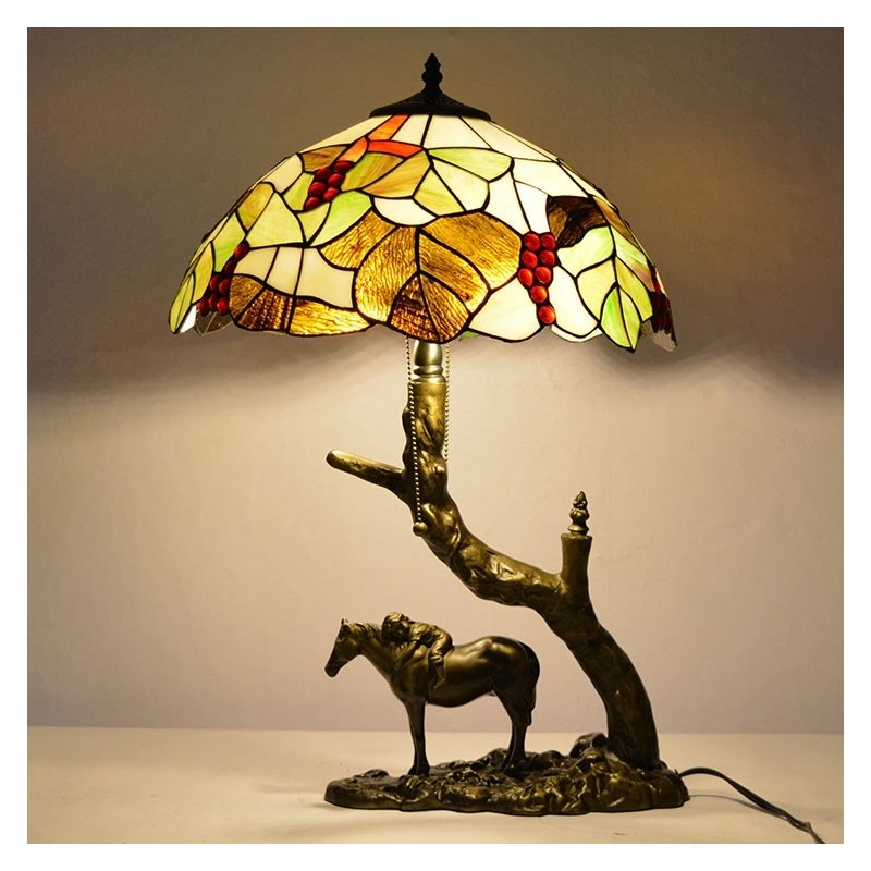 Lámpara de mesa de vidrio de colores estilo Tiffany, lámpara de escritorio con pantalla de hoja de 16 pulgadas y base de resina de caballo