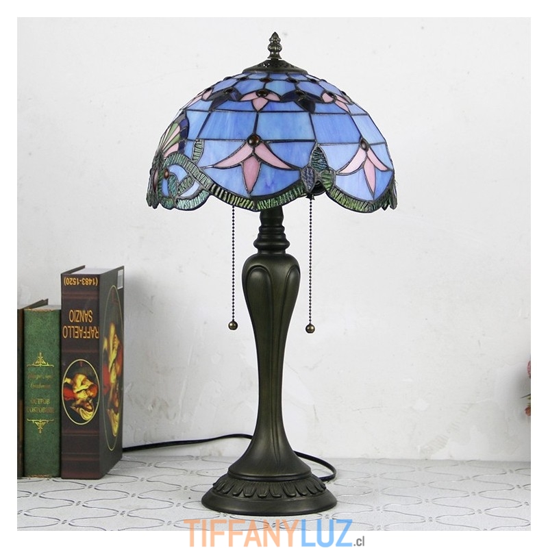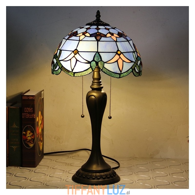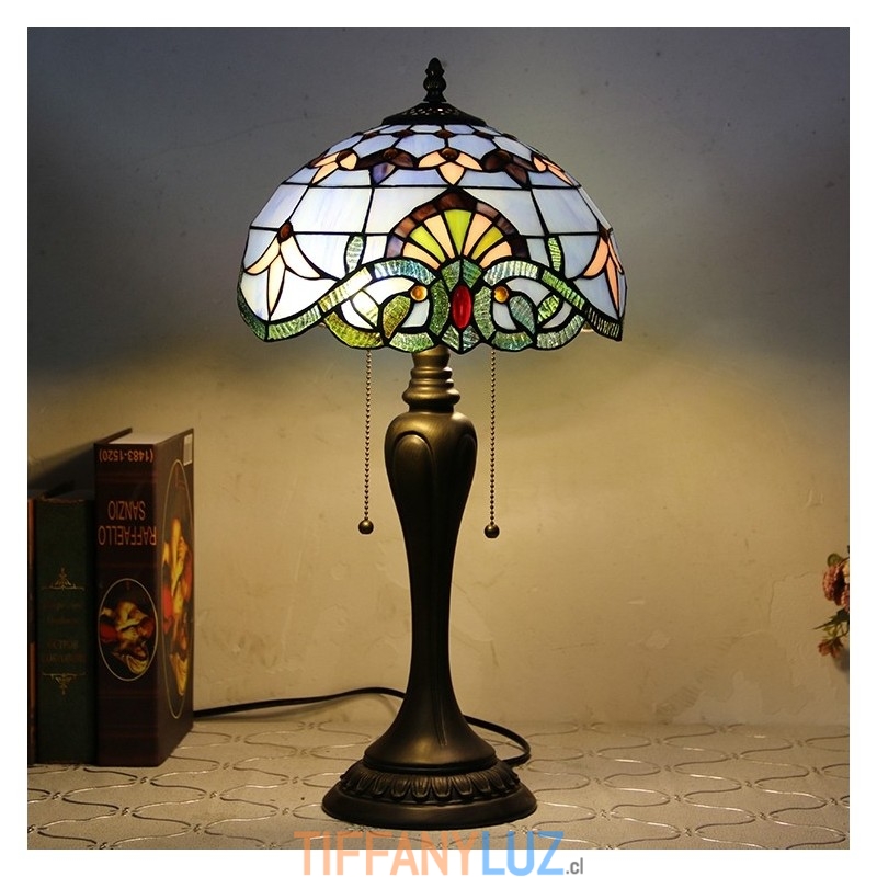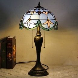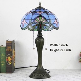 Lámpara de escritorio estilo Tiffany de 12 pulgadas, lámpara de mesa de vidrio manchado barroco azul, luz creativa para mesita de noche de dormitorio