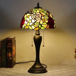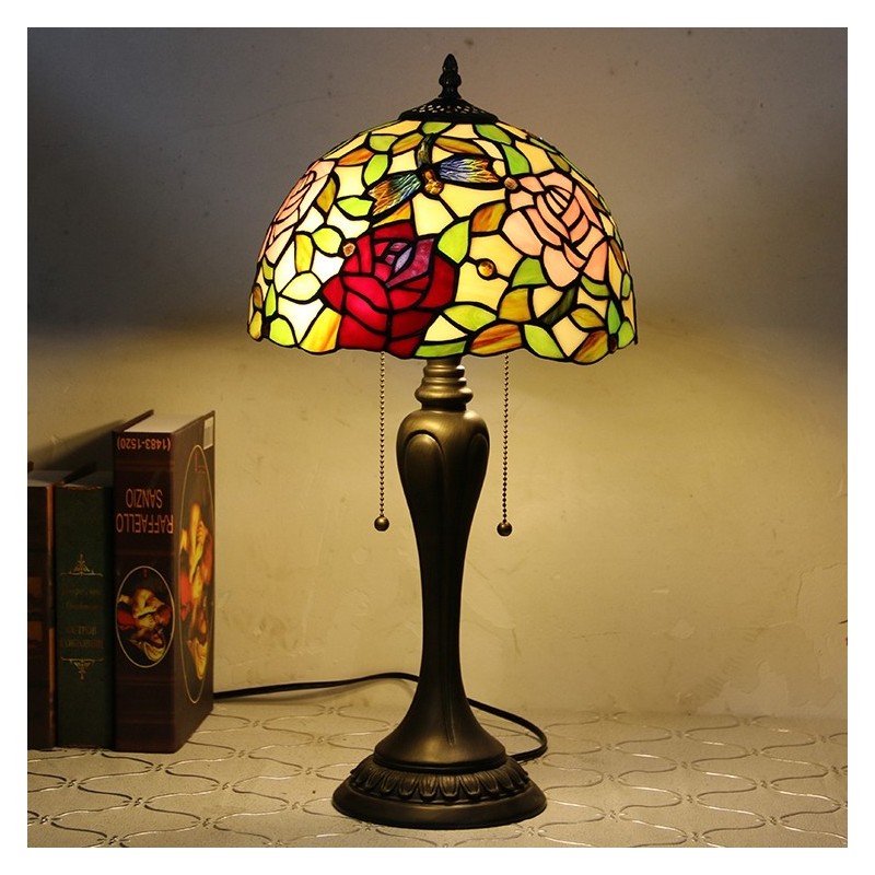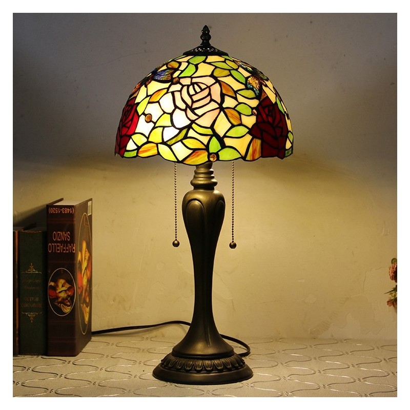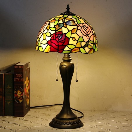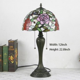 Lámpara de escritorio estilo Tiffany de 12 pulgadas, elegante lámpara de mesa con vitrales y flores, creativa lámpara de mesita de noche para dormitorio