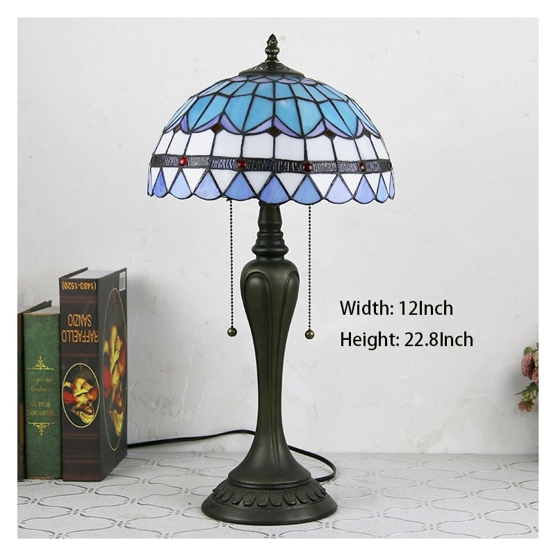 Lámpara de escritorio estilo Tiffany de 12 pulgadas, lámpara de mesa de vidrio de colores hecha a mano, luz creativa para mesita de noche de dormitorio
