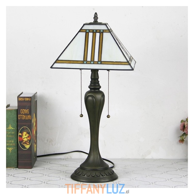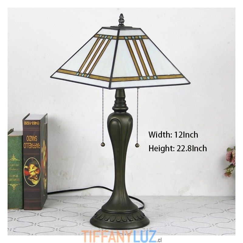 Lámpara de escritorio estilo Tiffany de 12 pulgadas, lámpara de mesa cuadrada de vidrio de colores, luz creativa para mesita de noche de dormitorio
