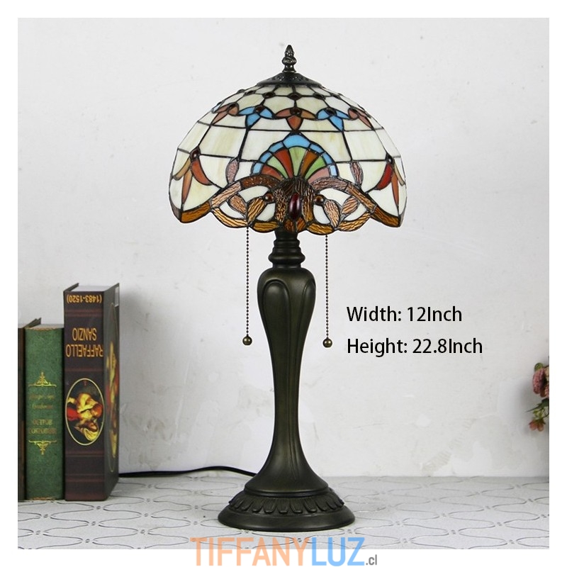 Lámpara de escritorio estilo Tiffany de 12 pulgadas, lámpara de mesa de vidrio manchado barroco, luz creativa para mesita de noche de dormitorio