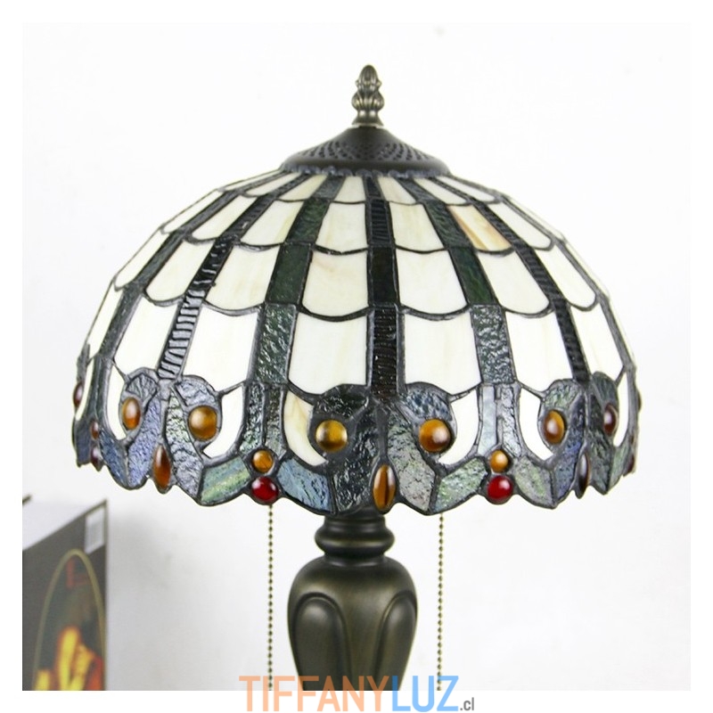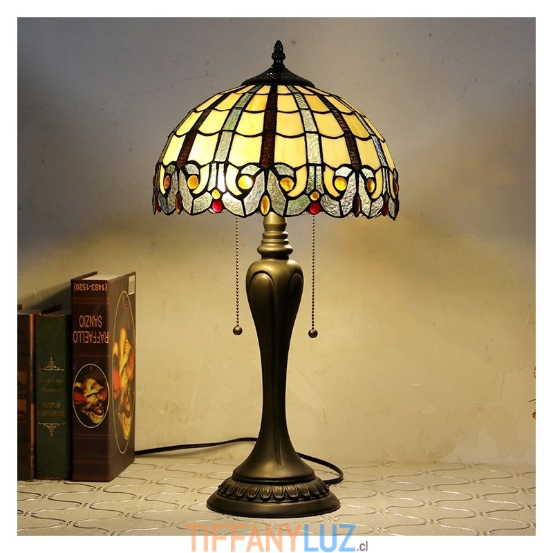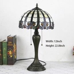 Lámpara de escritorio estilo Tiffany de 12 pulgadas, lámpara de mesa con vitrales de pavo real, luz creativa para mesita de noche de dormitorio