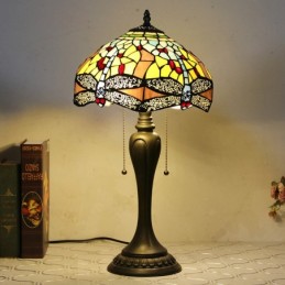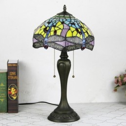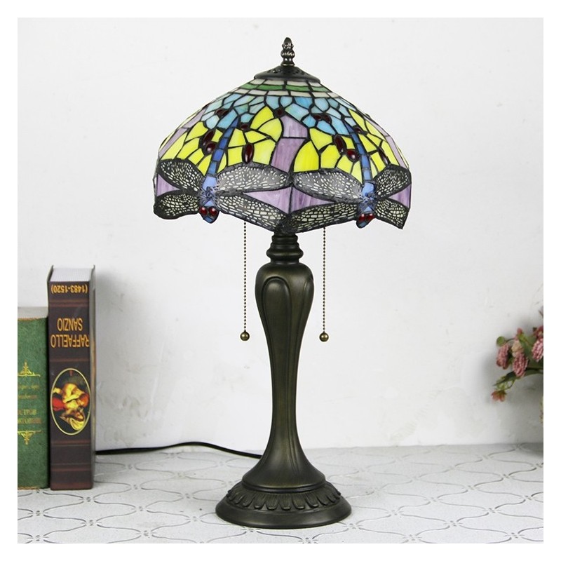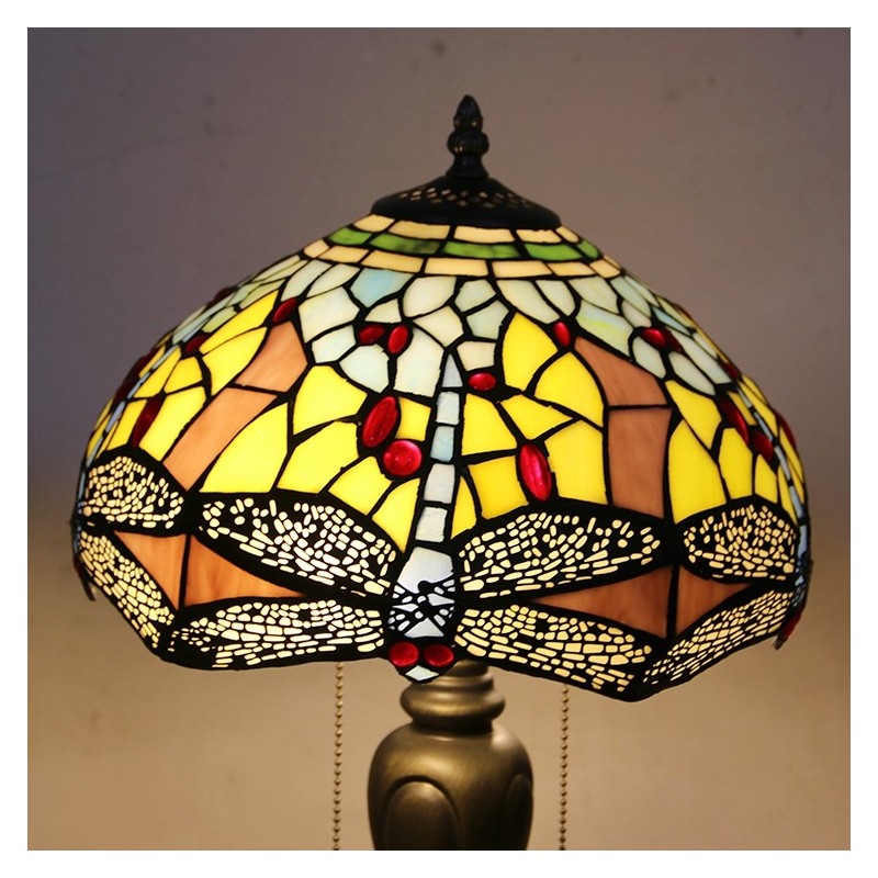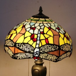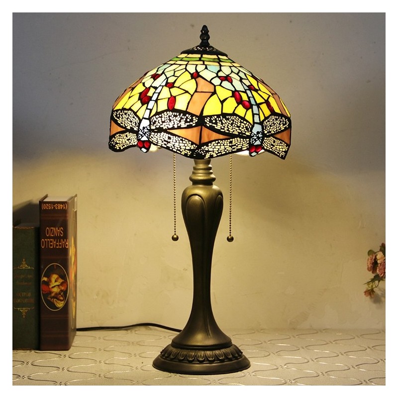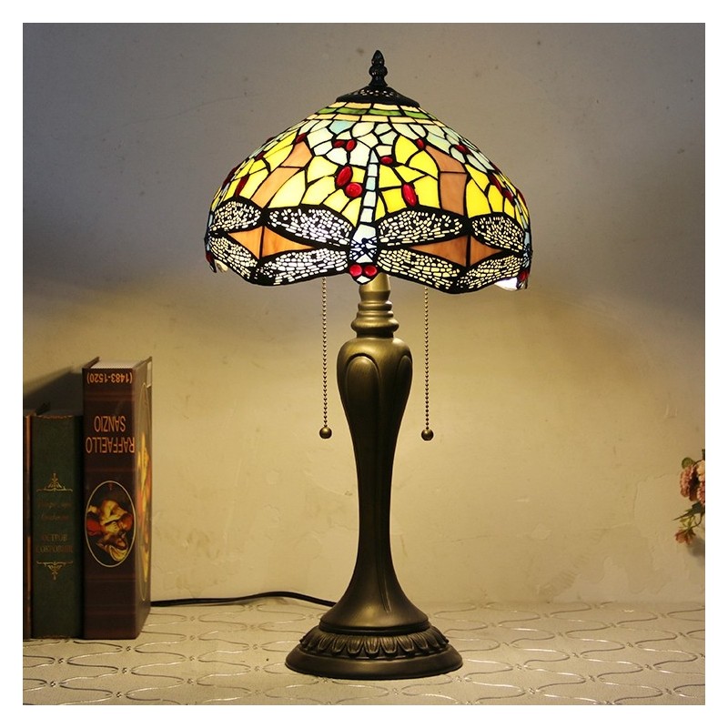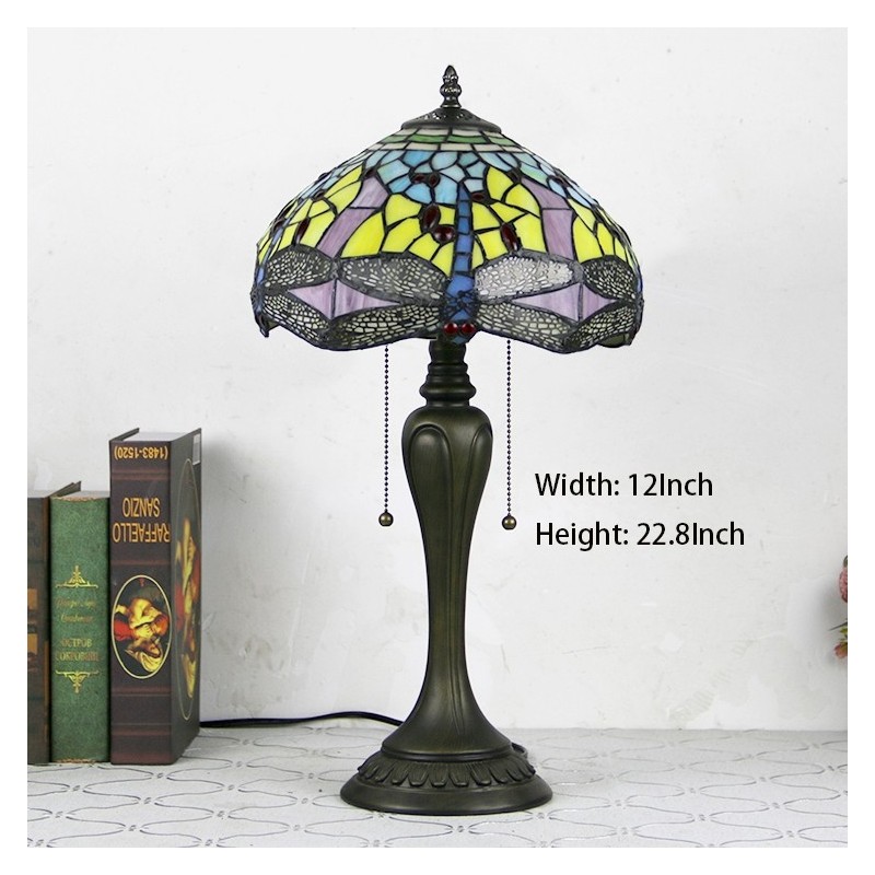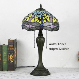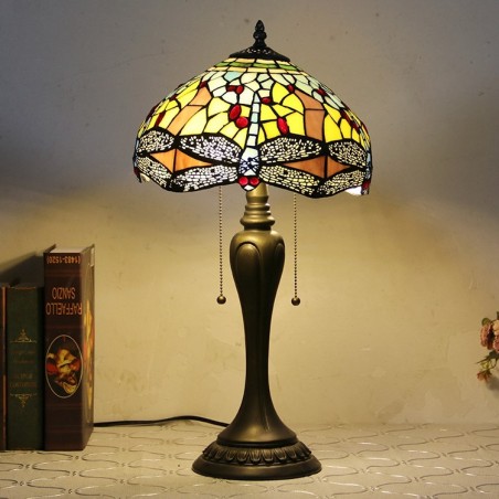 Lámpara de escritorio estilo Tiffany de 12 pulgadas, lámpara de mesa con vitrales en forma de libélula amarilla, luz creativa para mesita de noche de dormitorio