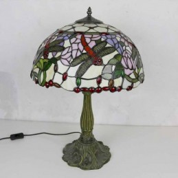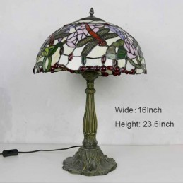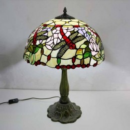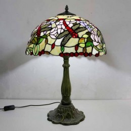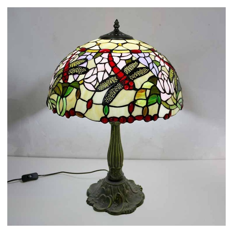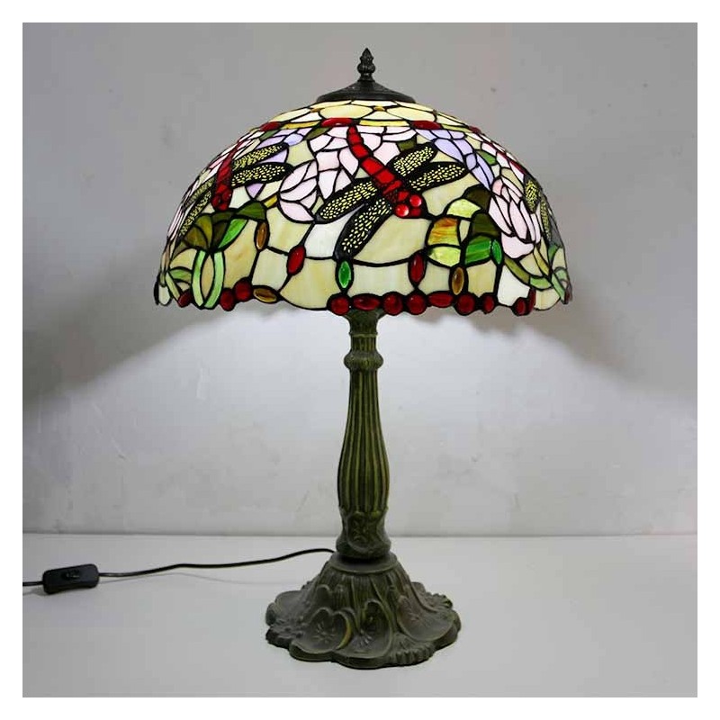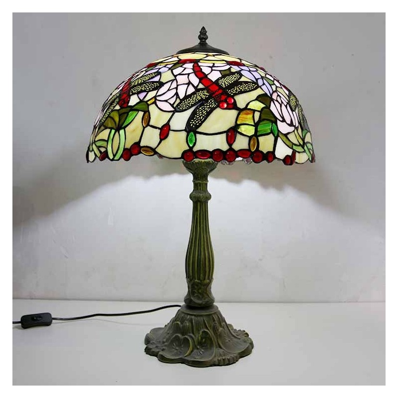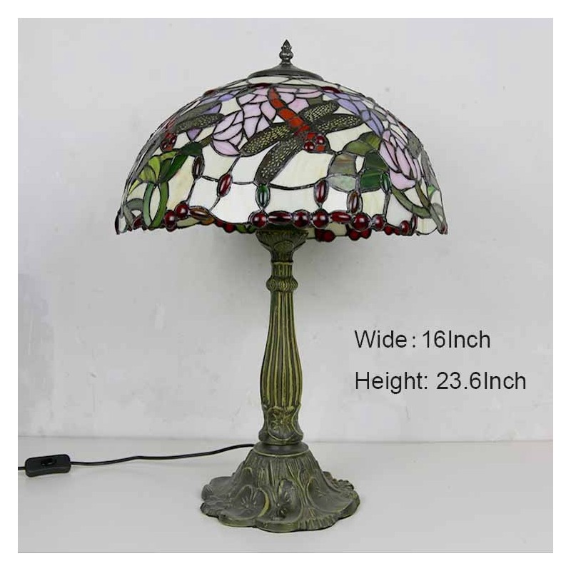 Lámpara de mesa de vidrio de colores con libélulas, estilo Tiffany, con pantalla de 16 pulgadas de ancho y base de aleación de zinc