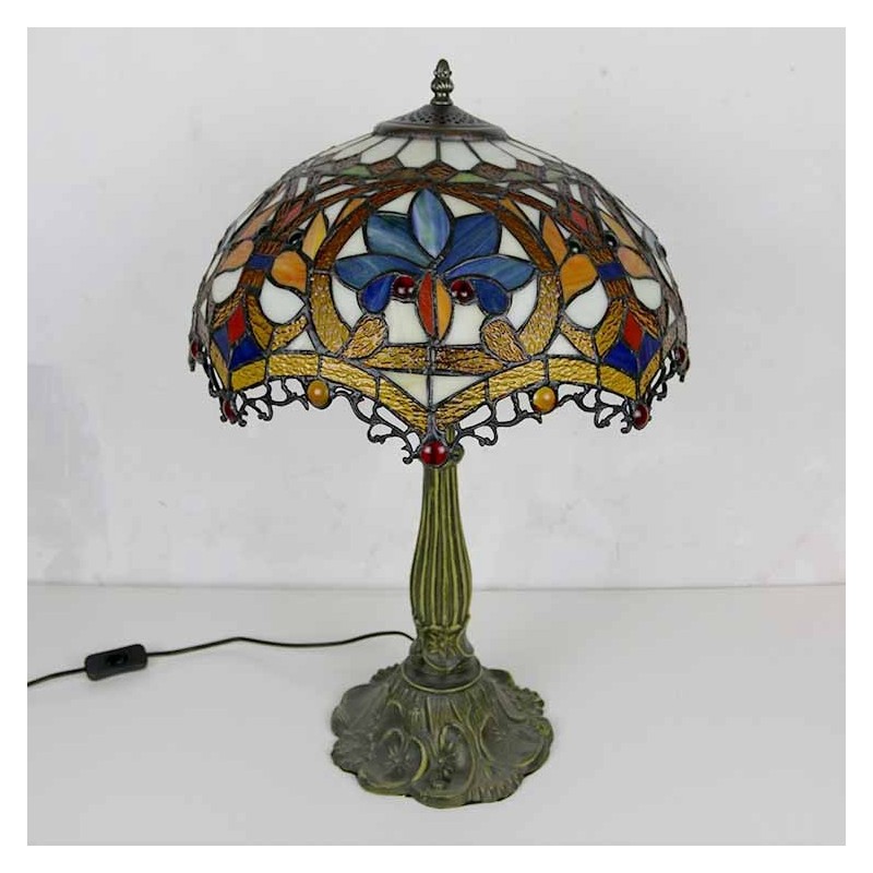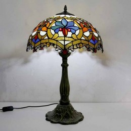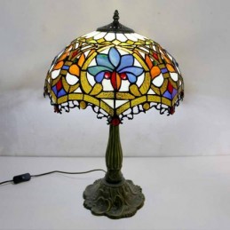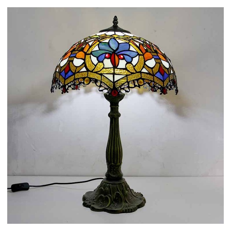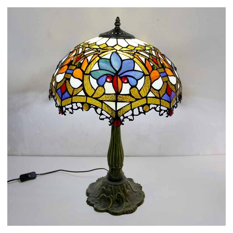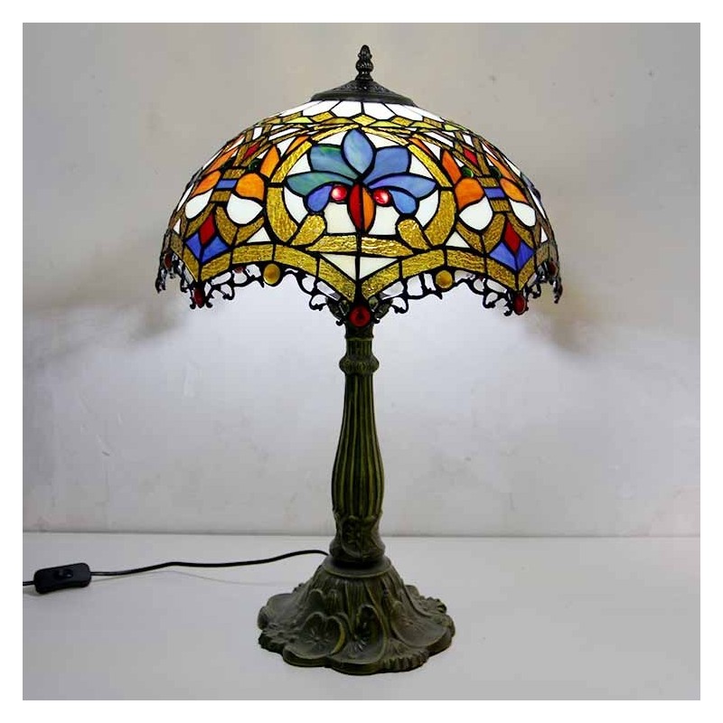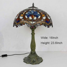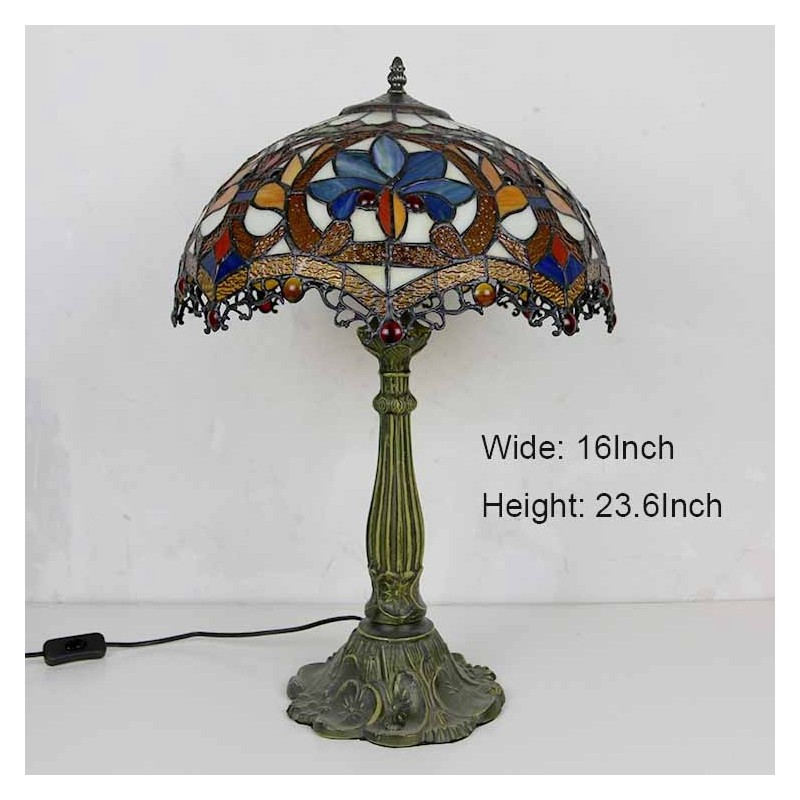 Lámpara de mesa de vidrio de colores estilo Tiffany con pantalla de 16 pulgadas de ancho y base de aleación de zinc