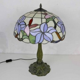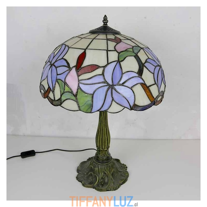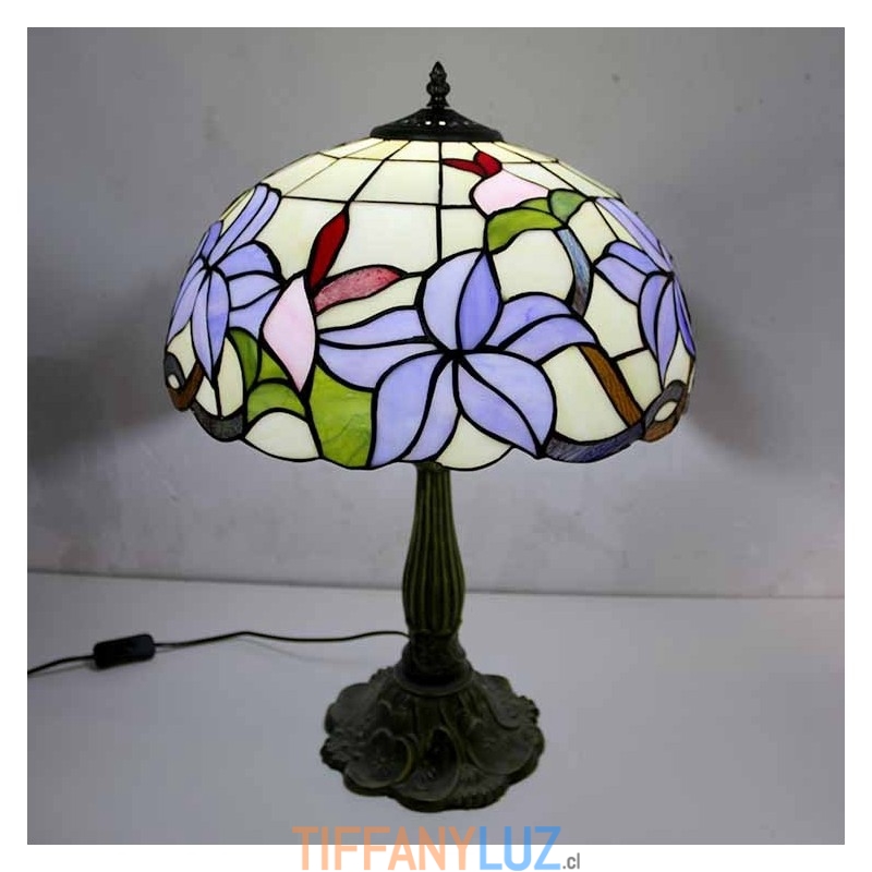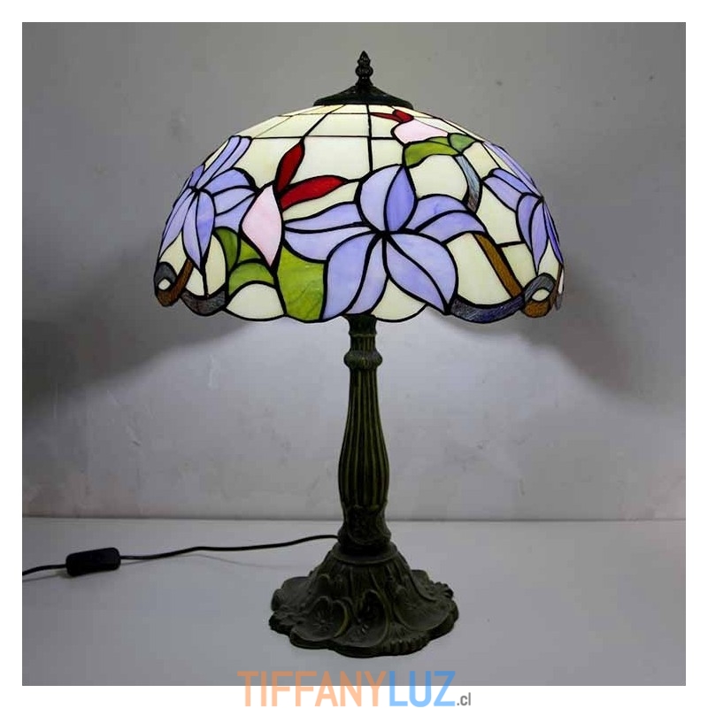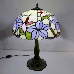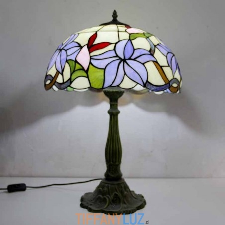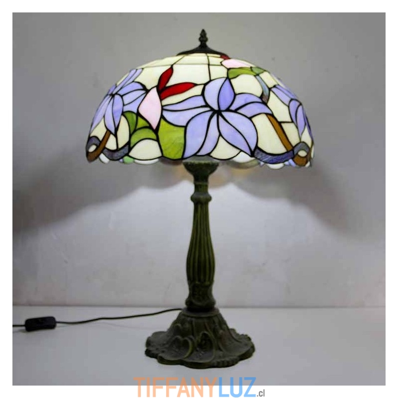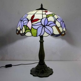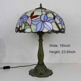 Lámpara de mesa de vidrio de colores retro, estilo Tiffany, luz de escritorio con pantalla de 16 pulgadas de ancho y base de aleación de zinc