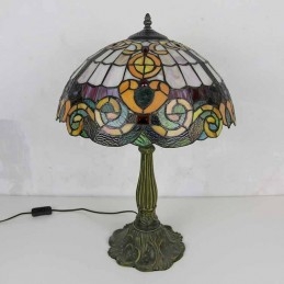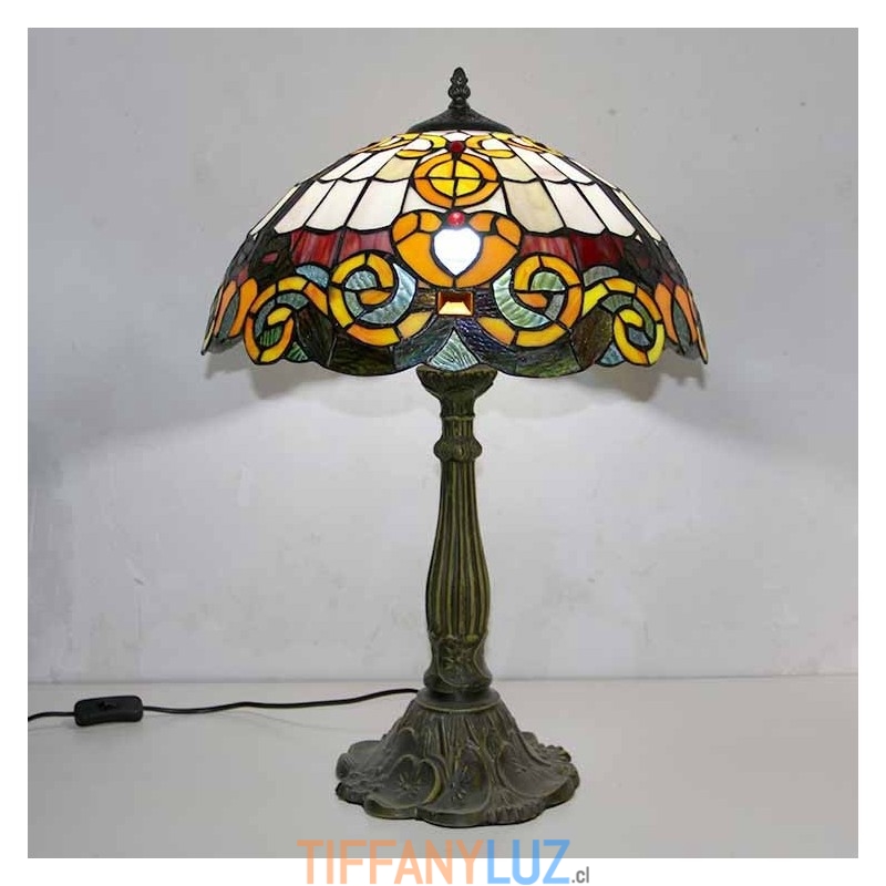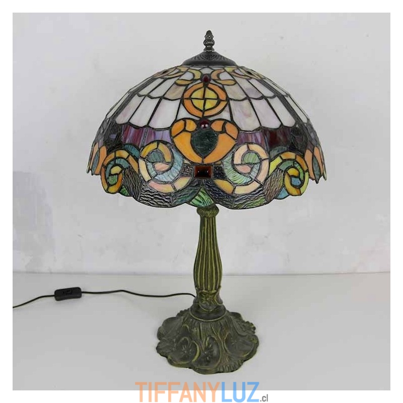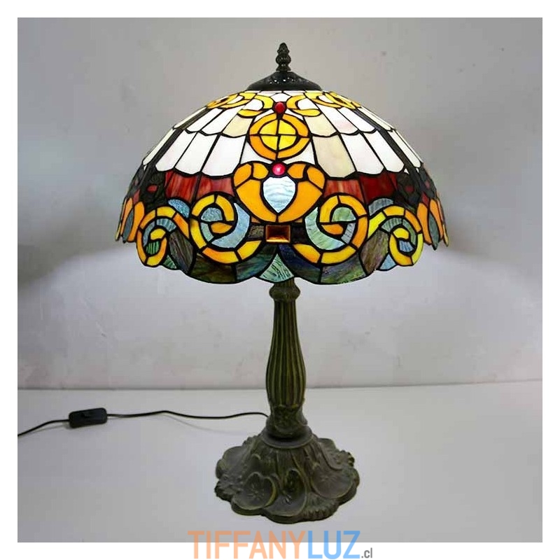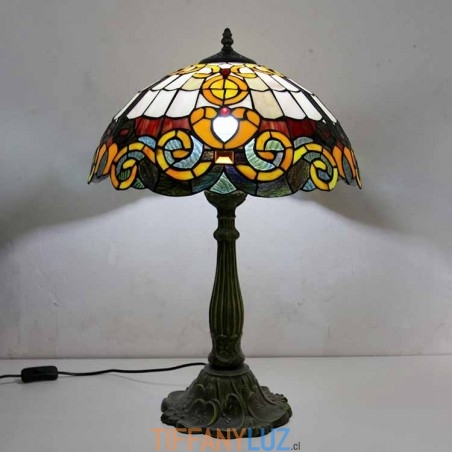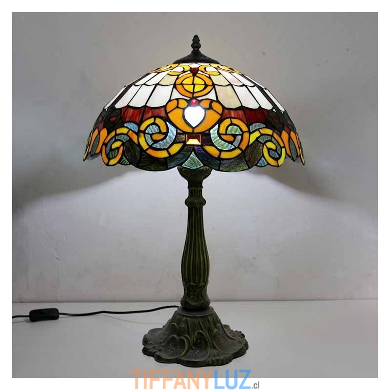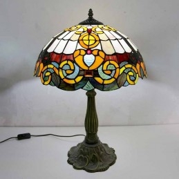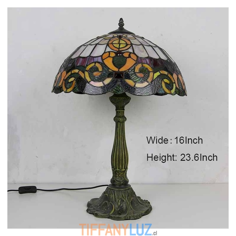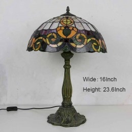 Lámpara de mesa de vidrio de colores antigua, estilo Tiffany, lámpara de escritorio con pantalla de 16 pulgadas de ancho y base de aleación de zinc