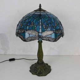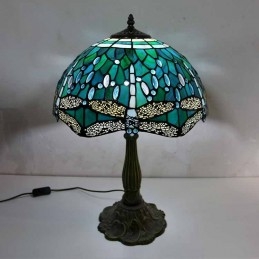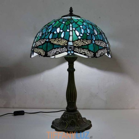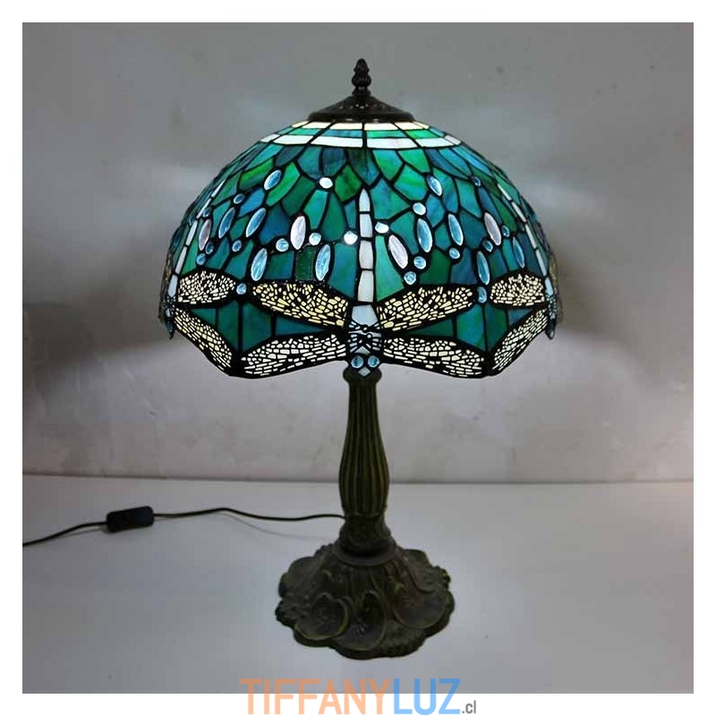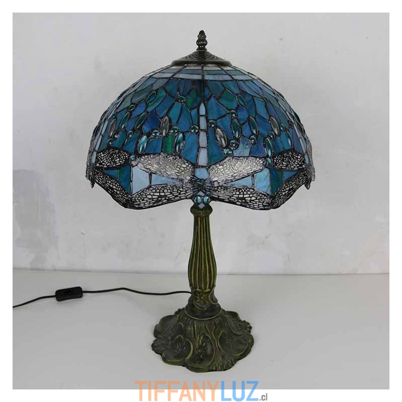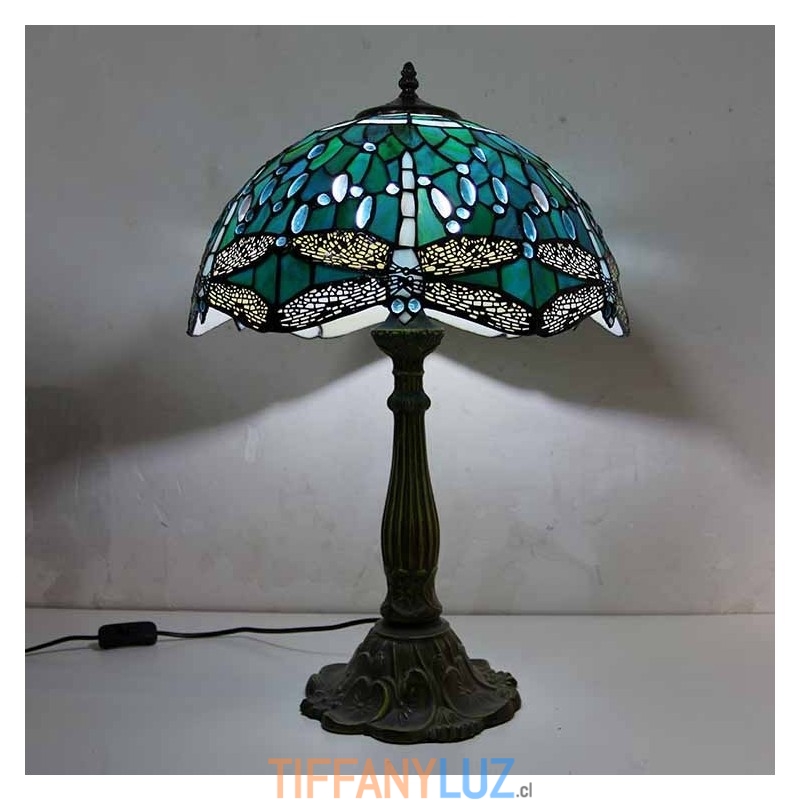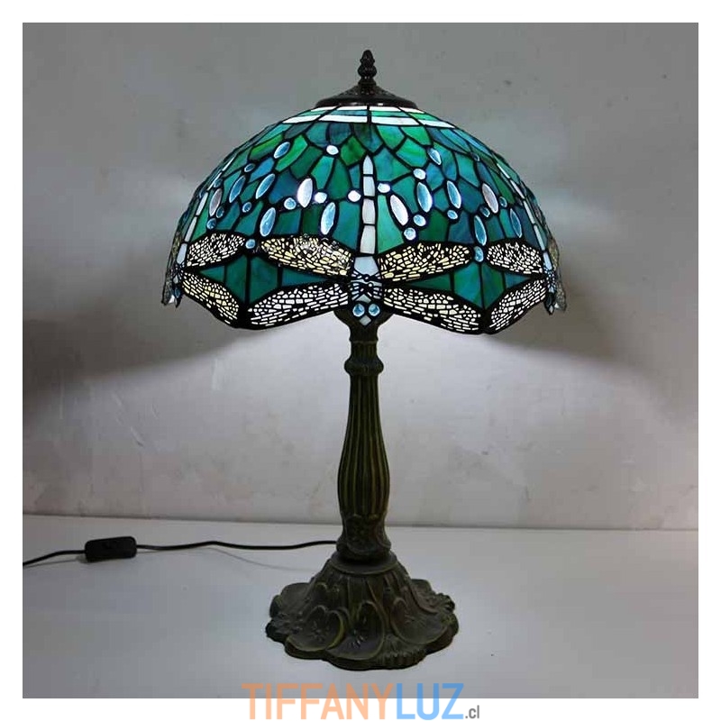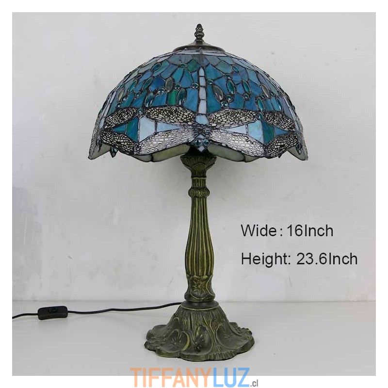 Lámpara de mesa de vidrio de colores con forma de libélula, estilo Tiffany, con pantalla de 16 pulgadas de ancho y base de aleación de zinc