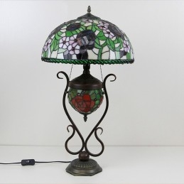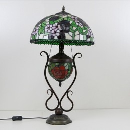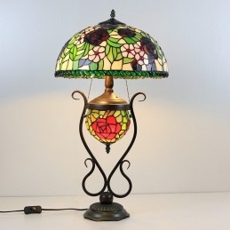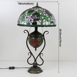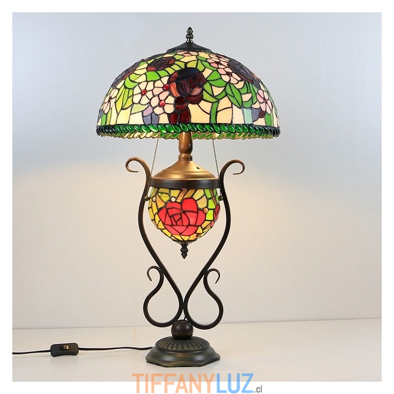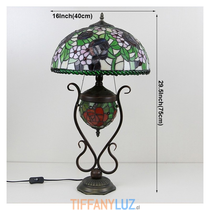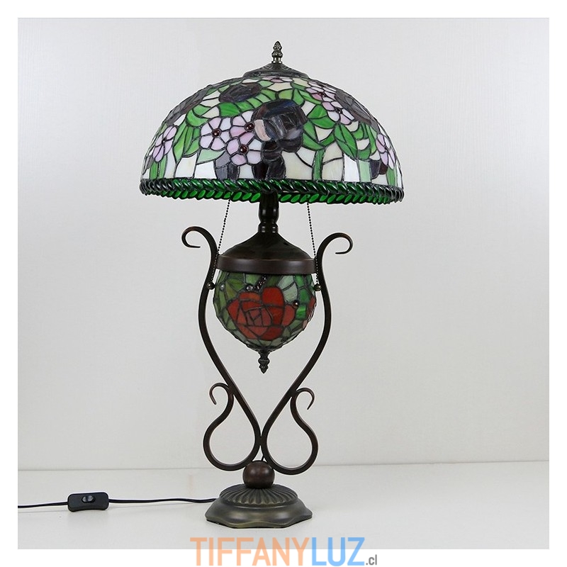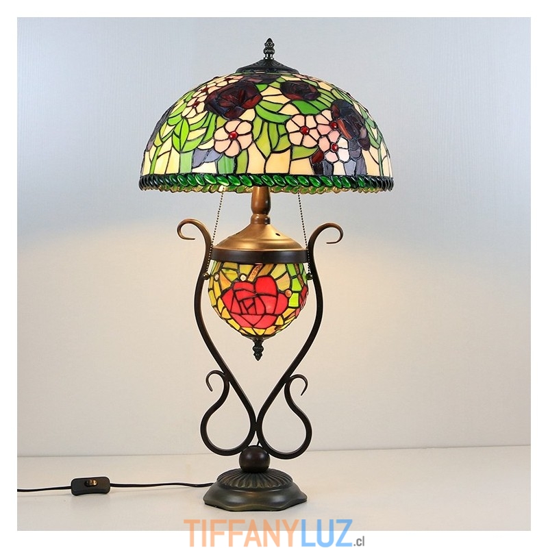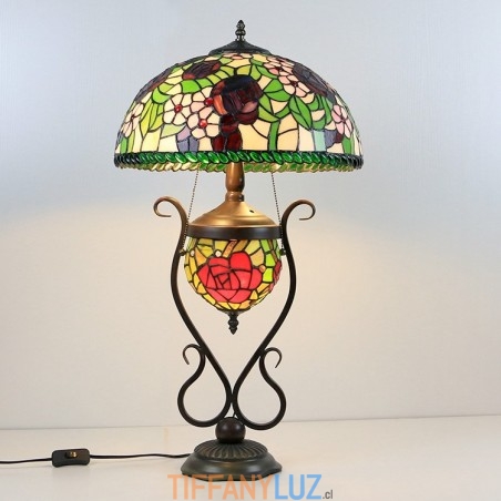 Lámpara de mesa estilo Tiffany con diseño de banquero, vitrales, rosas y flores, con iluminación doble para dormitorio, mesita de noche, arte de iluminación