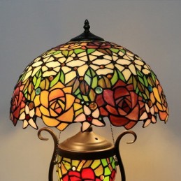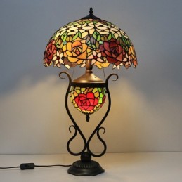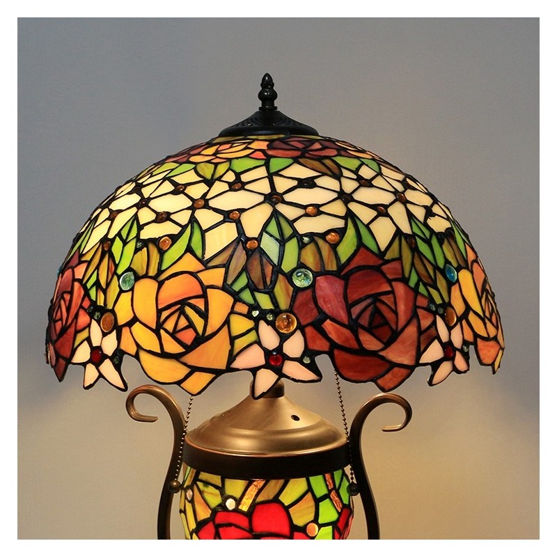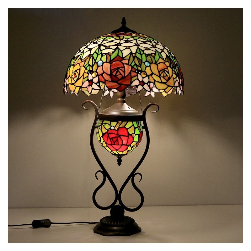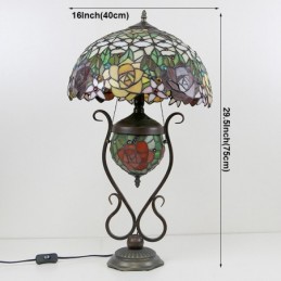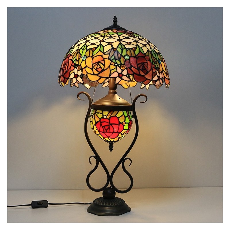 Lámpara de mesa Tiffany de 16 pulgadas, lámpara de noche de vidrio de colores roja con iluminación artística de mesita de noche para dormitorio con doble luz
