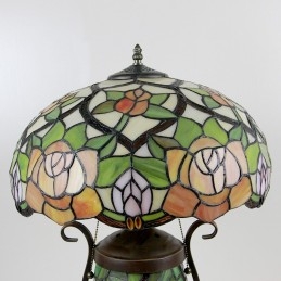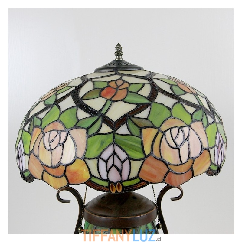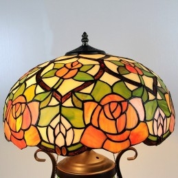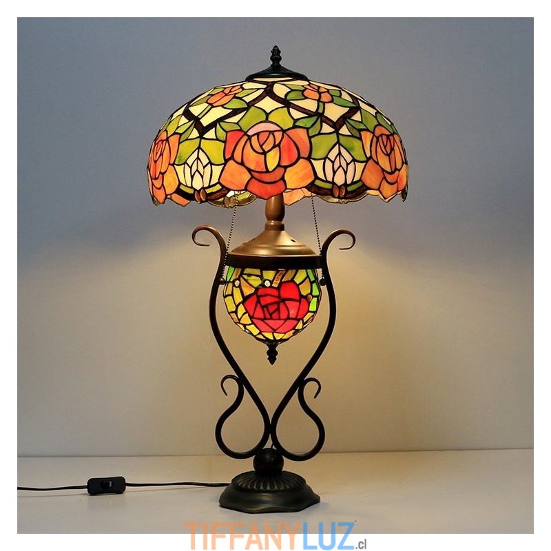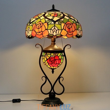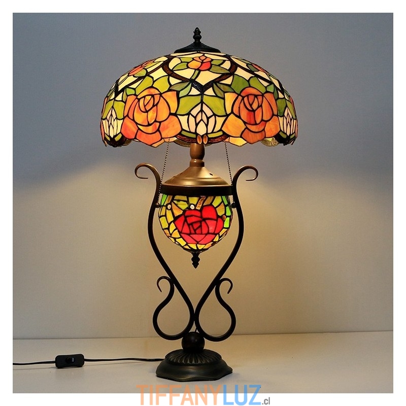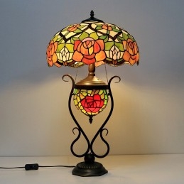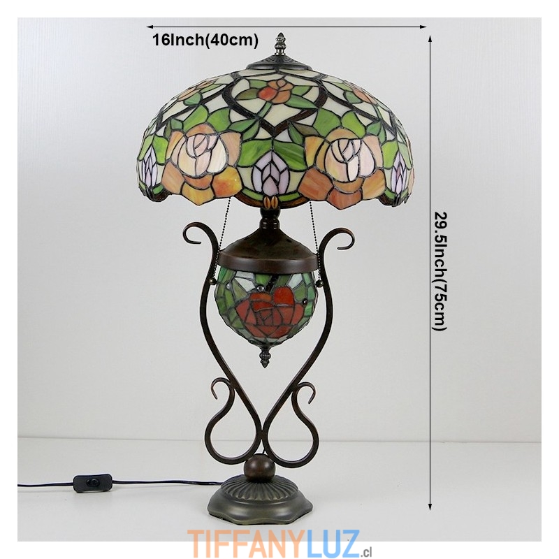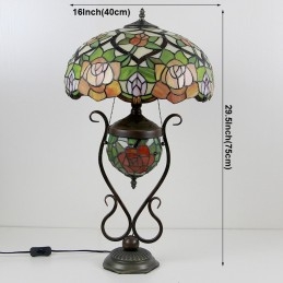 Lámpara de mesa de cristal de color estilo Tiffany de 16 pulgadas con rosa amarilla y doble iluminación para dormitorio