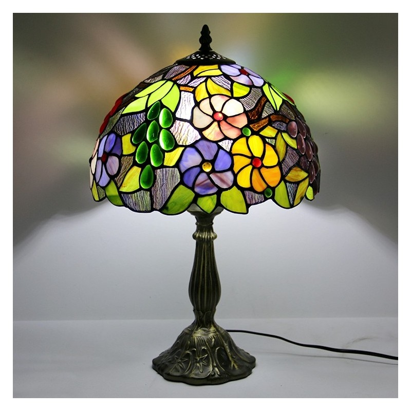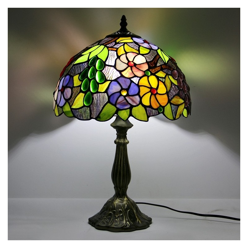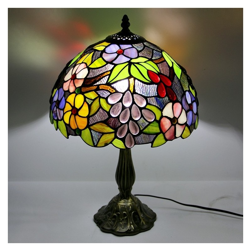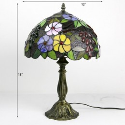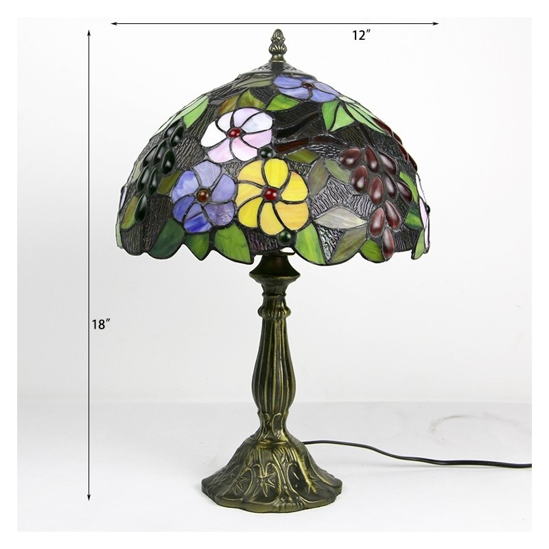 Lámpara Tiffany de 12 pulgadas con vitrales, lámpara de mesa de noche, estilo floral antiguo, luz de escritorio de lectura de 18 pulgadas de alto