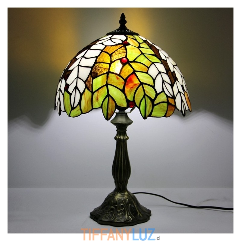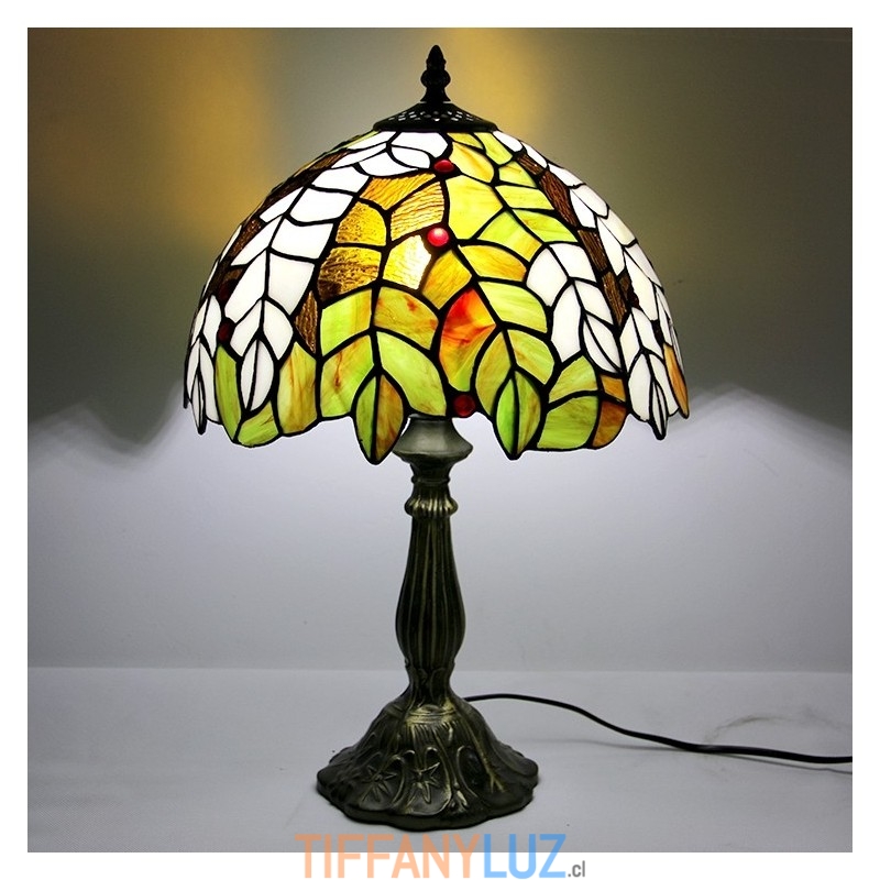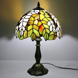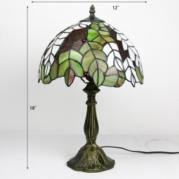 Lámpara Tiffany de 12 pulgadas con vitrales para mesita de noche, estilo hojas amarillas, luz de escritorio para lectura de 18 pulgadas de alto