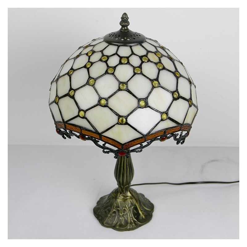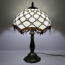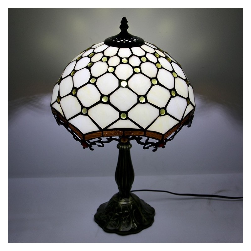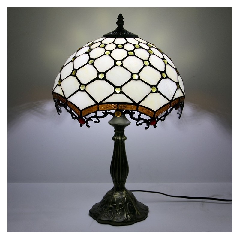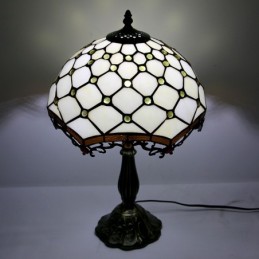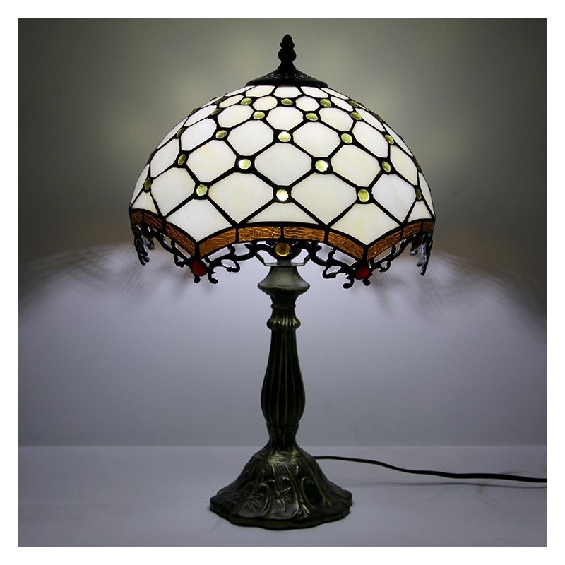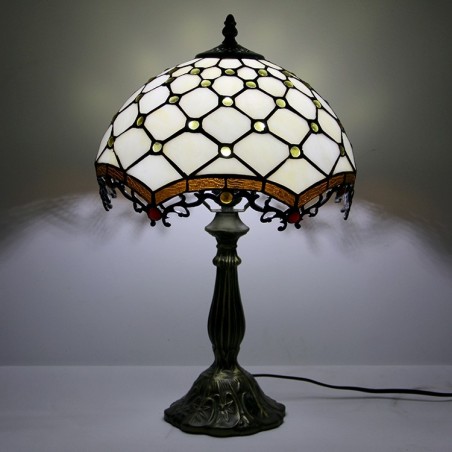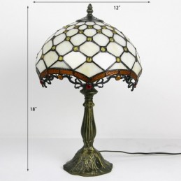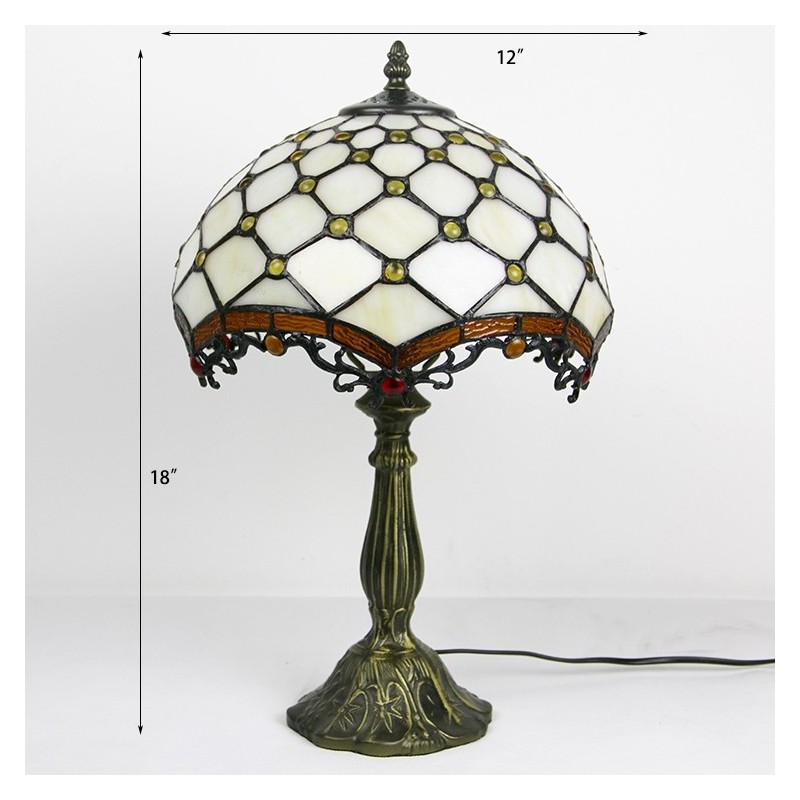 Lámpara Tiffany de 12 pulgadas con vitrales, para mesita de noche, con cuentas blancas, para lectura, escritorio, 18 pulgadas de alto