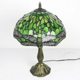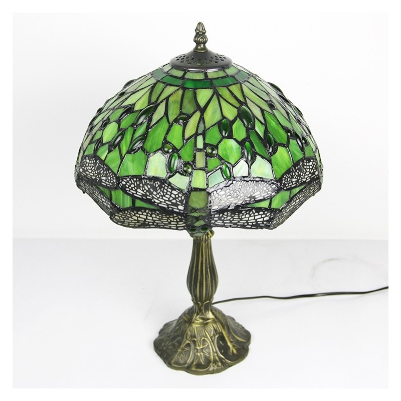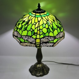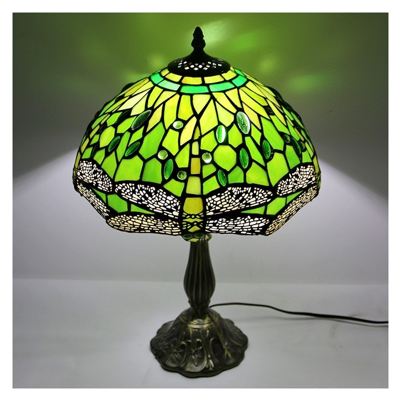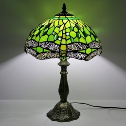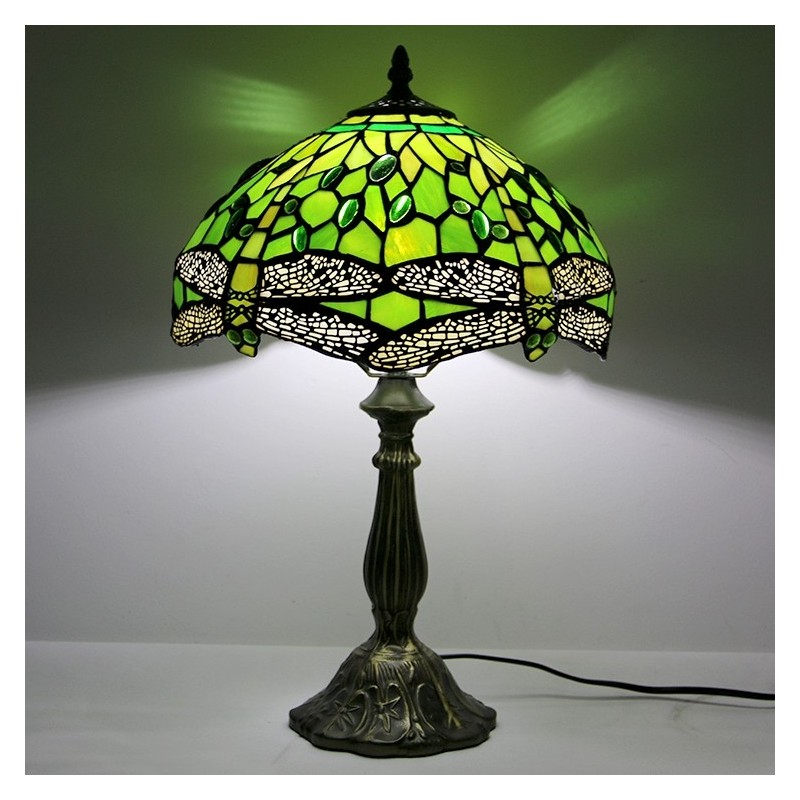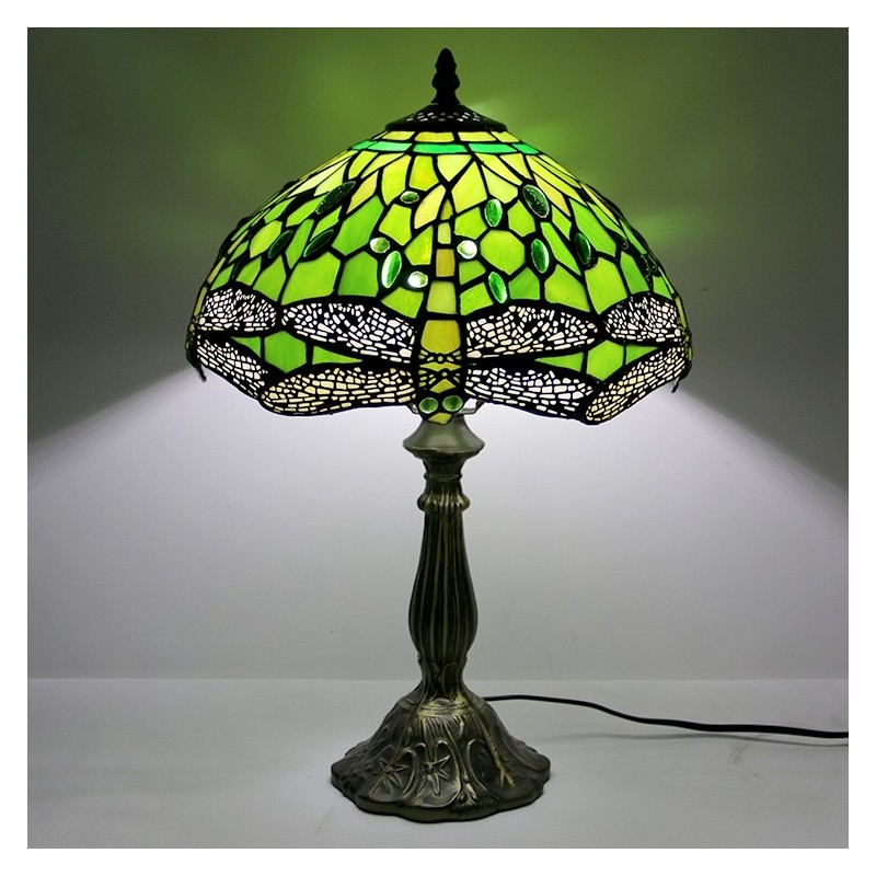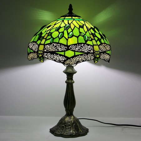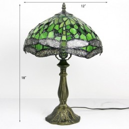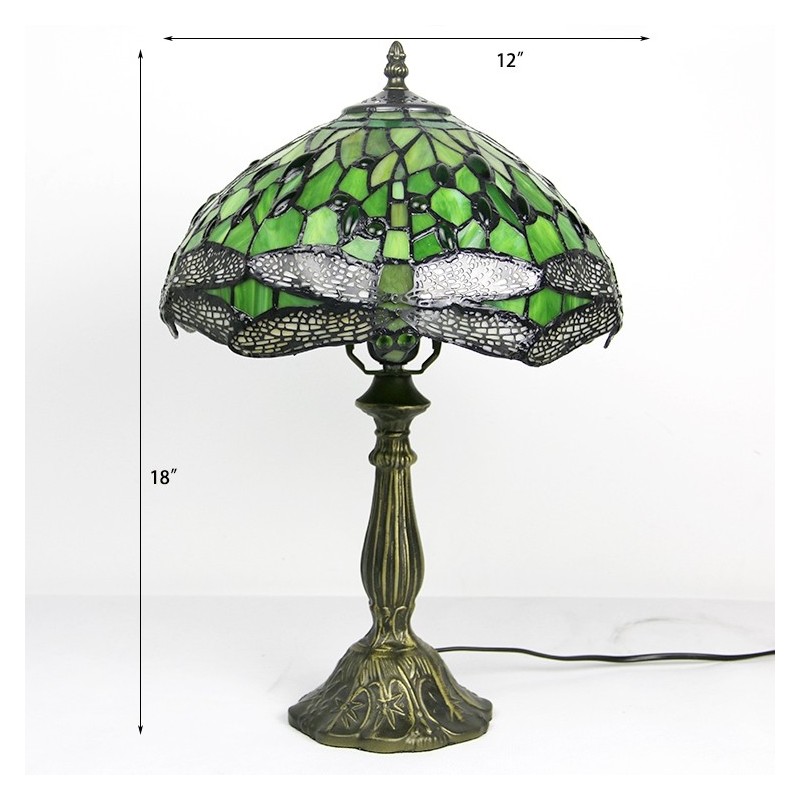 Lámpara Tiffany de 12 pulgadas con vitrales para mesita de noche, estilo libélula verde, luz de escritorio para lectura de 18 pulgadas de alto