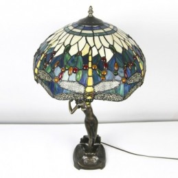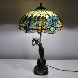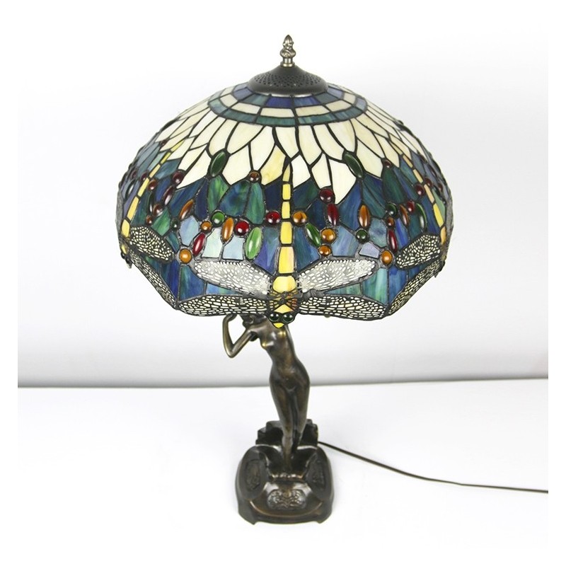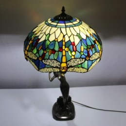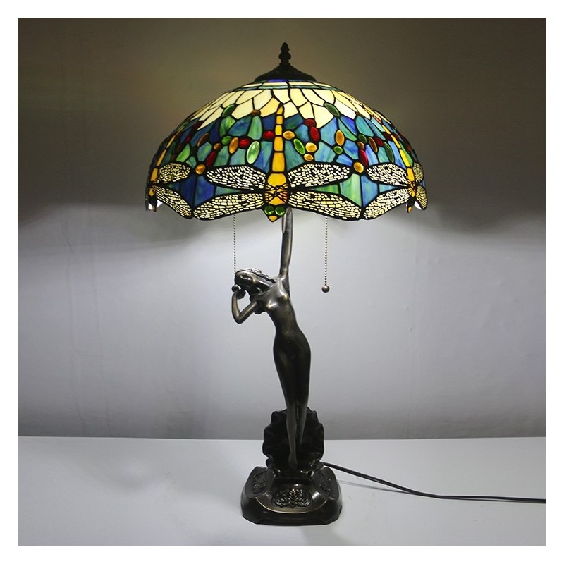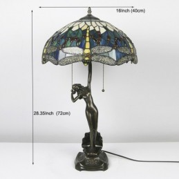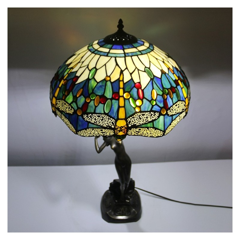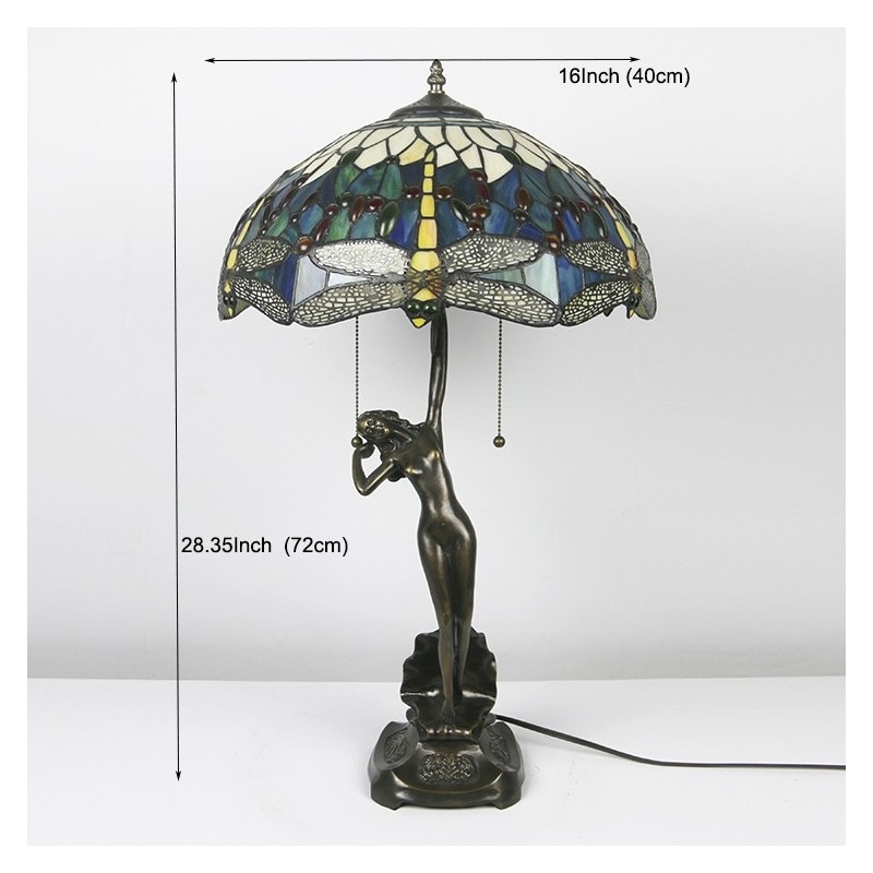 Lámpara de mesa Tiffany de 16 pulgadas con forma de libélula, lámpara de vidrio emplomado, lámpara de memoria de banquero de lujo, base de cobre antiguo