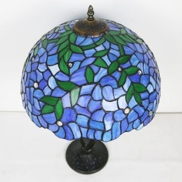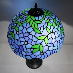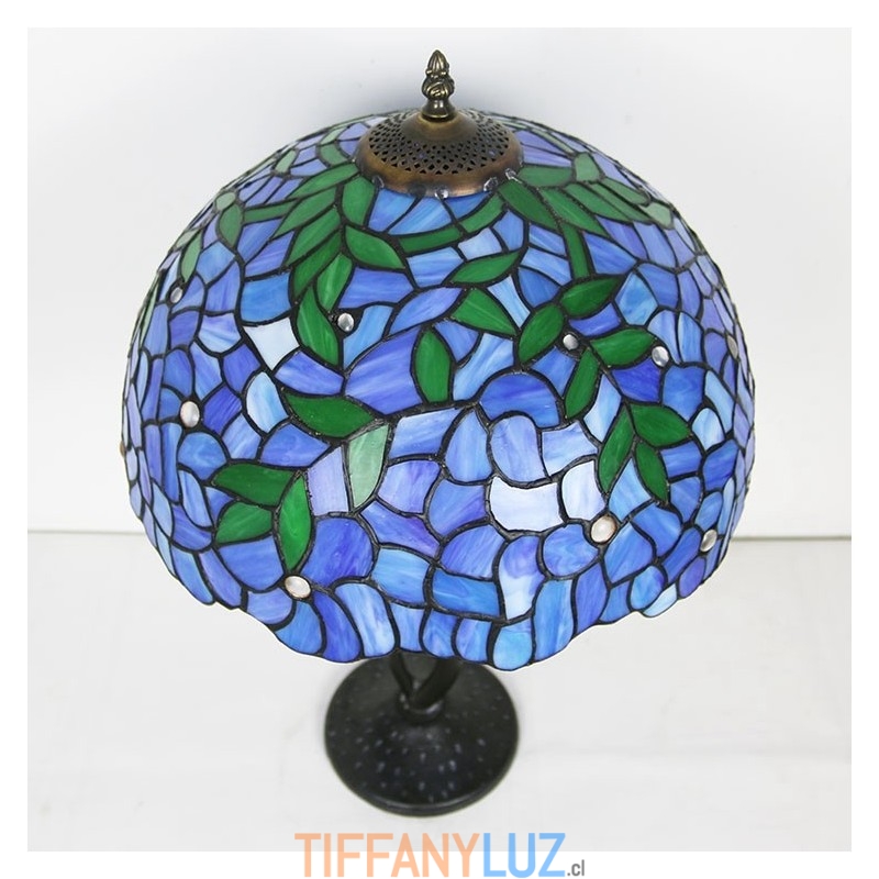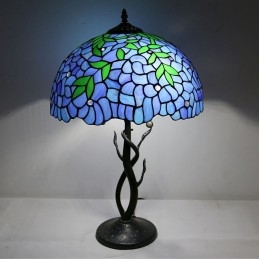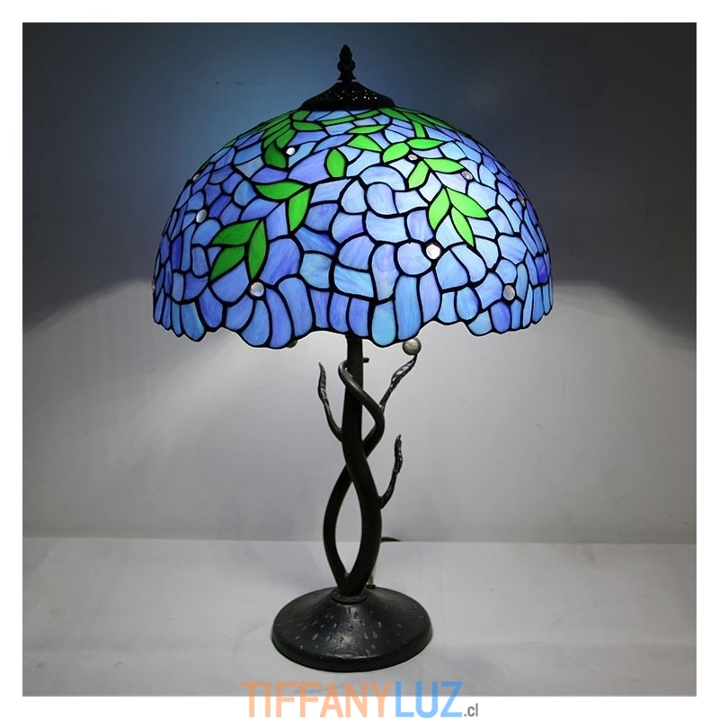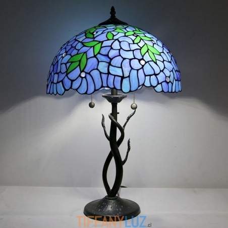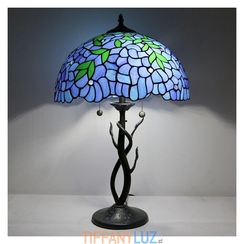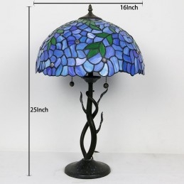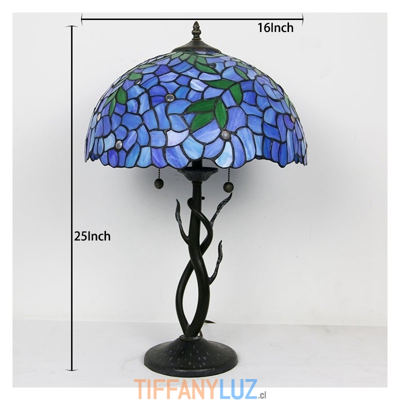 Lámpara de mesa estilo Tiffany con pantalla de vidrio coloreado, lámpara de noche azul, lámpara decorada con rosas, 16 pulgadas