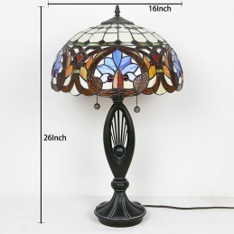 Lámpara de mesa estilo Tiffany con pantalla de vidrio de colores Love, lámpara de noche, lámpara decorada con rosas, 16 pulgadas