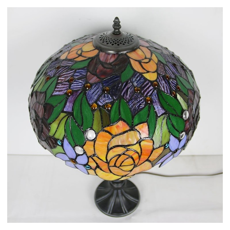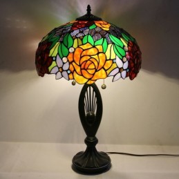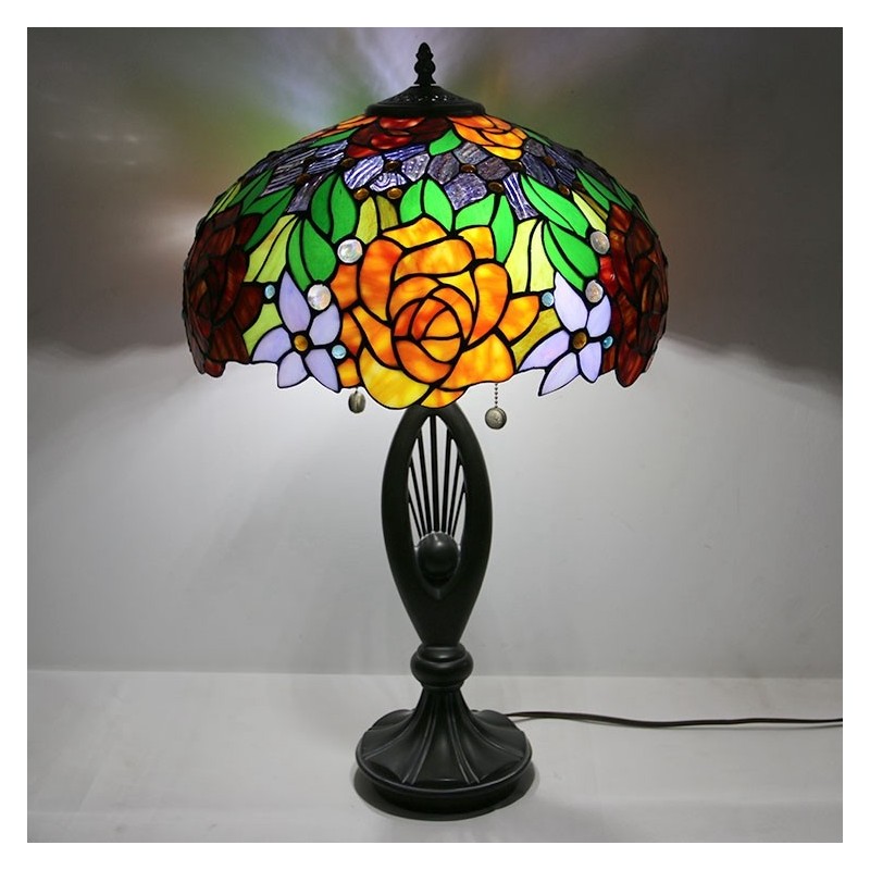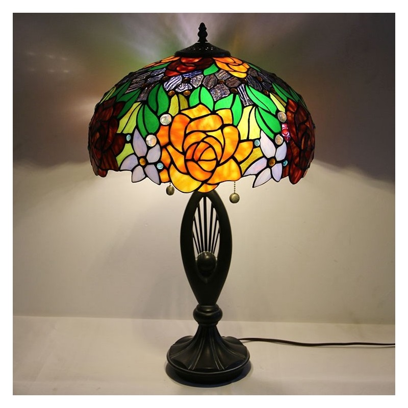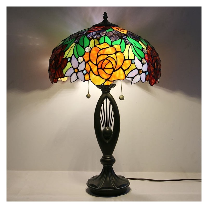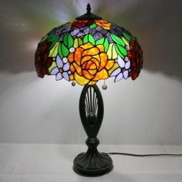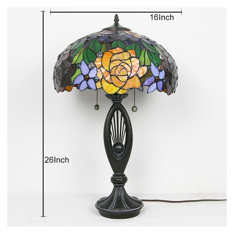Lámpara de mesa estilo Tiffany con pantalla de vidrio de colores, lámpara de noche, lámpara decorada con rosas, 16 pulgadas