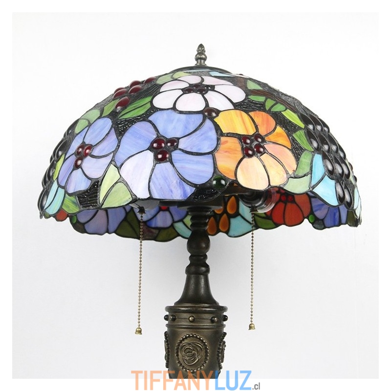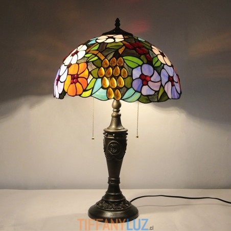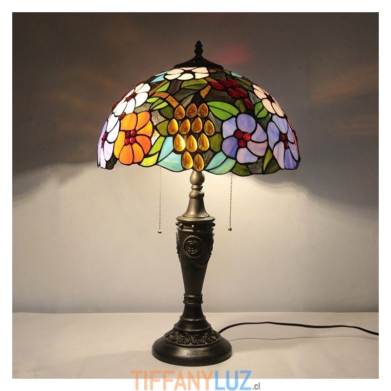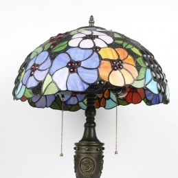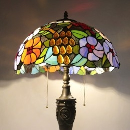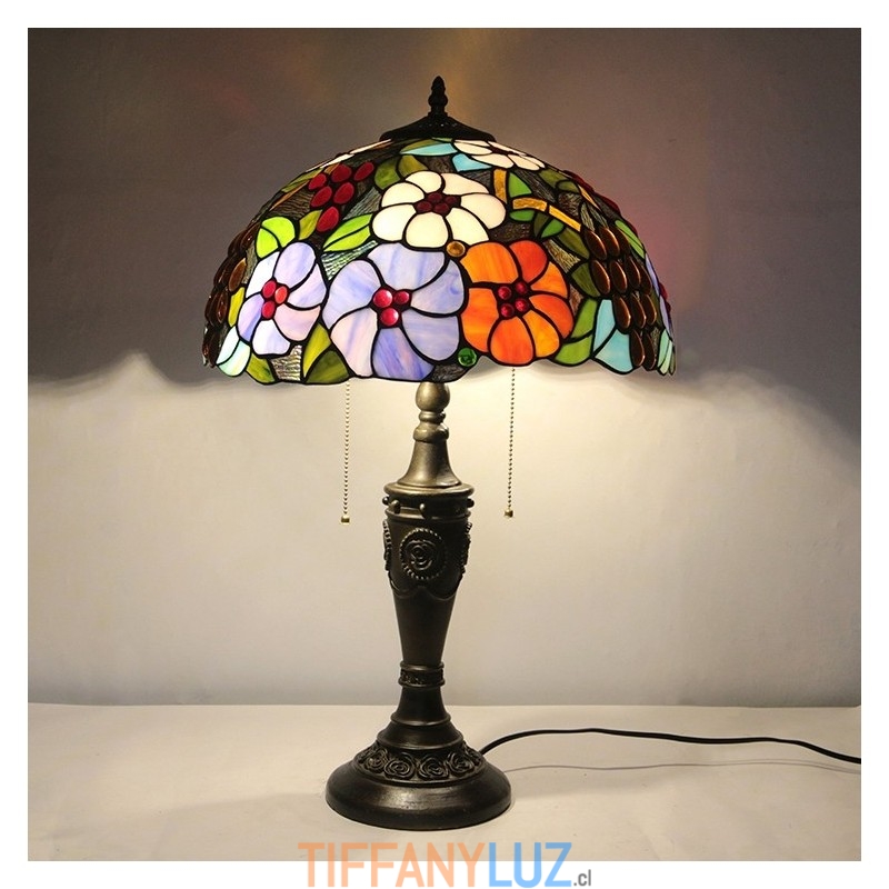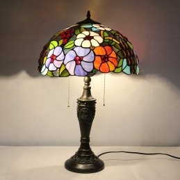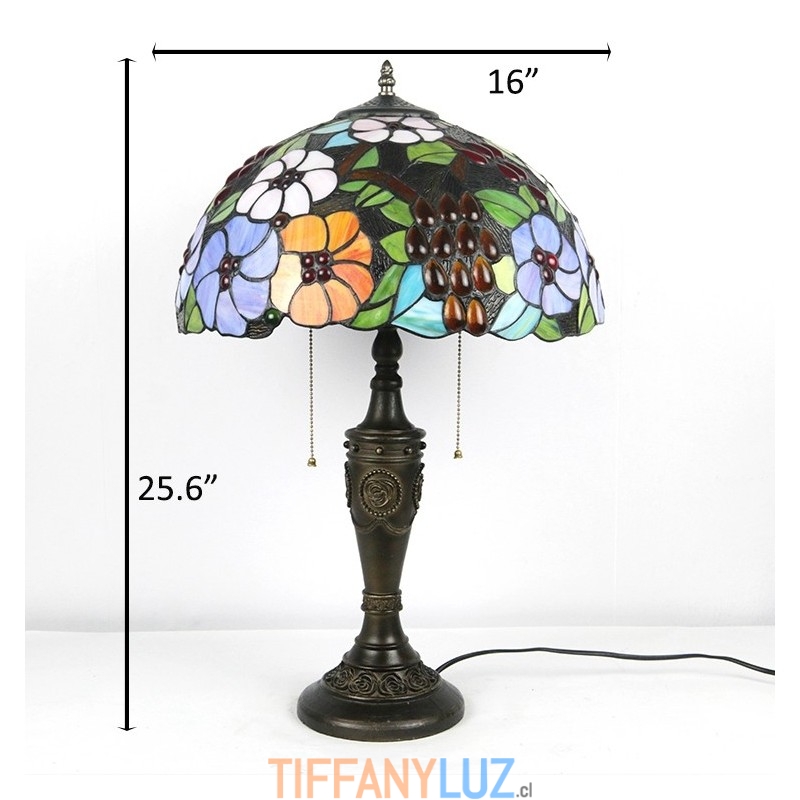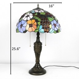 Lámpara de mesa Tiffany retro de 16 pulgadas con flores teñidas, lámpara de escritorio de vidrio hecha a mano