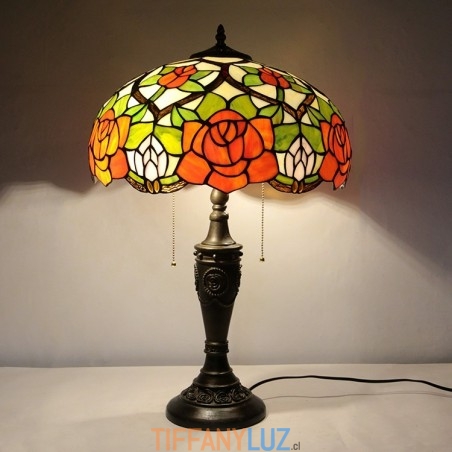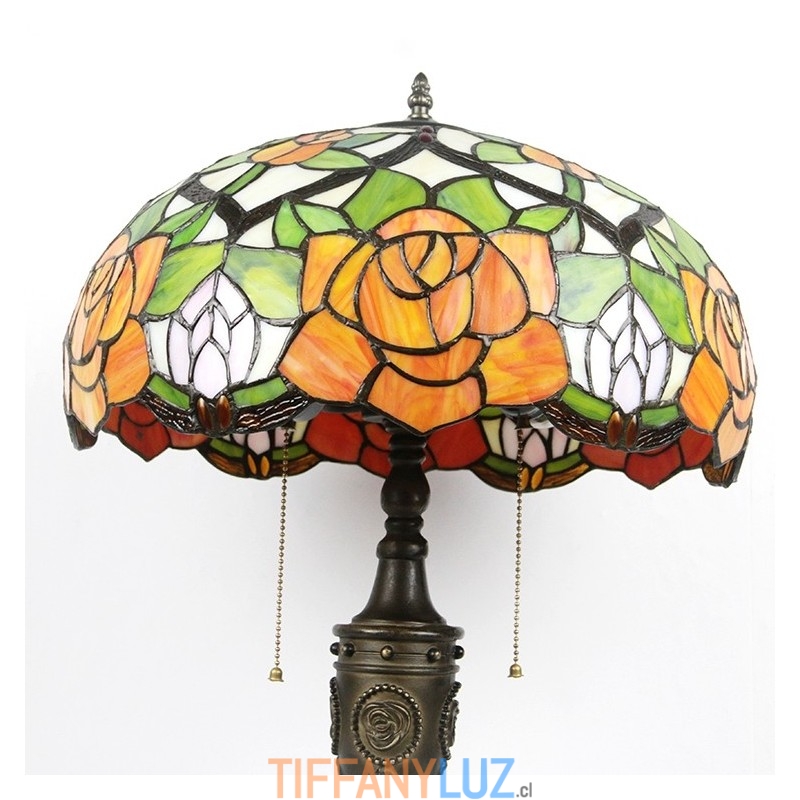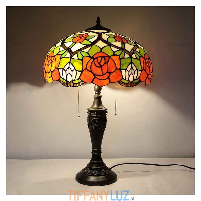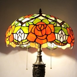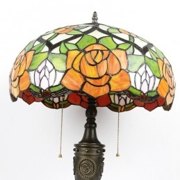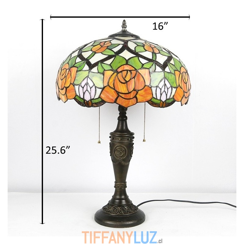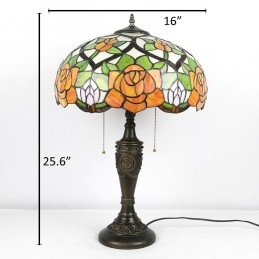 Lámpara de mesa Tiffany retro de 16 pulgadas con pantalla de vidrio coloreado y rosa amarilla, lámpara de escritorio de vidrio hecha a mano