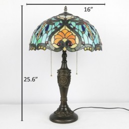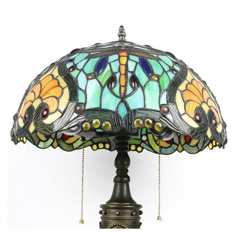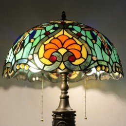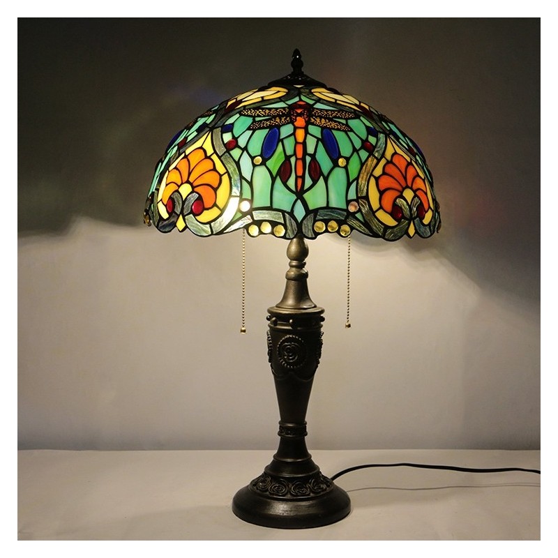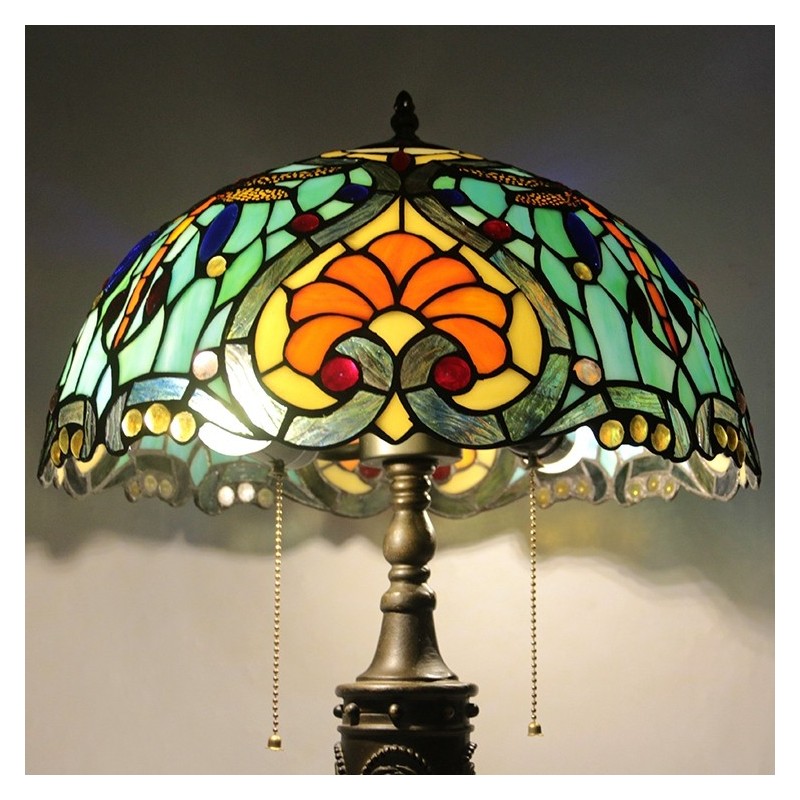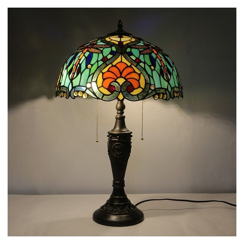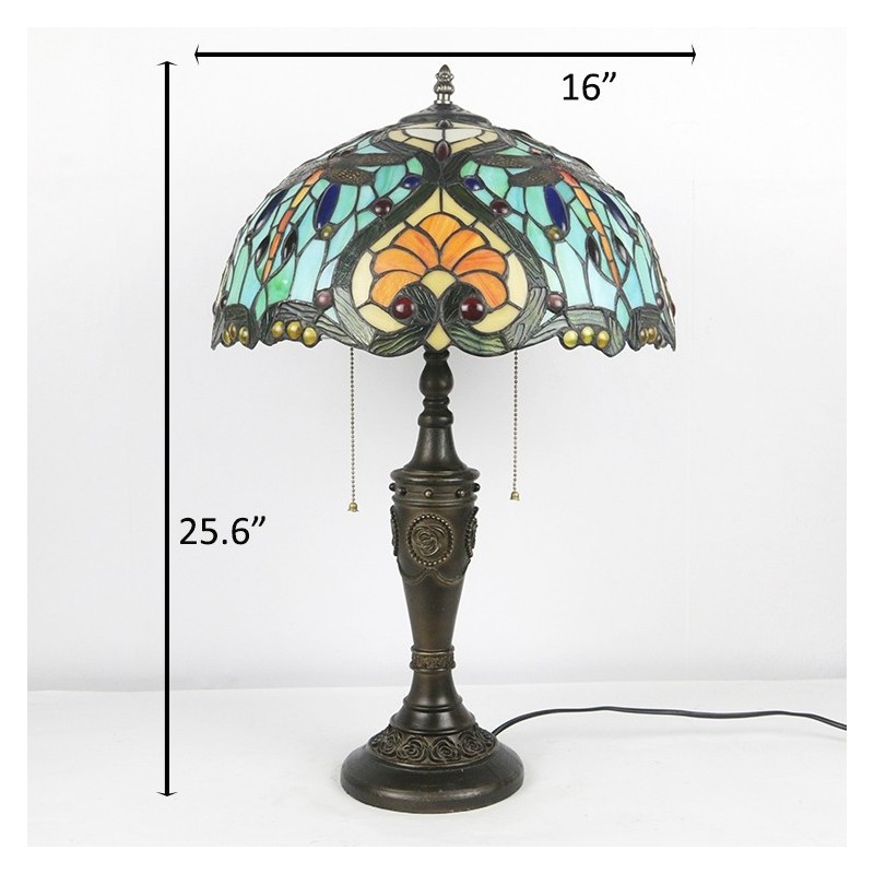 Lámpara de mesa Tiffany retro de 16 pulgadas con pantalla de vidrio de colores Love Green, lámpara de escritorio de vidrio hecha a mano