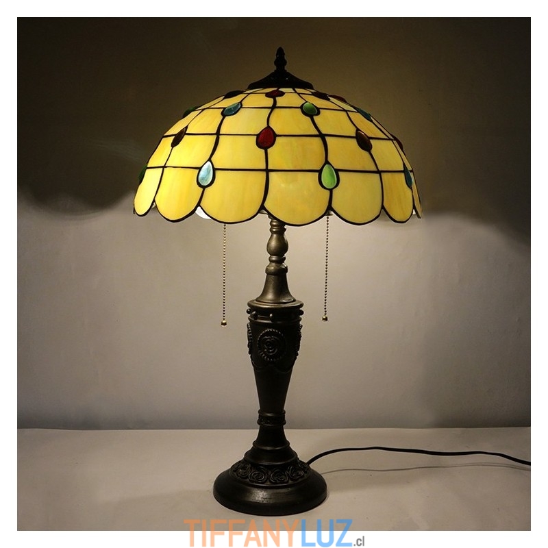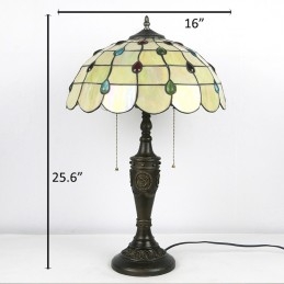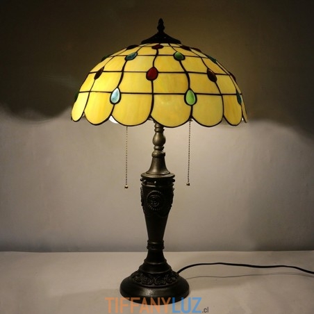Lámpara de mesa Tiffany retro de 16 pulgadas con pantalla de vidrio coloreado amarillo, lámpara de escritorio de vidrio hecha a mano