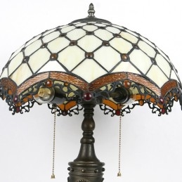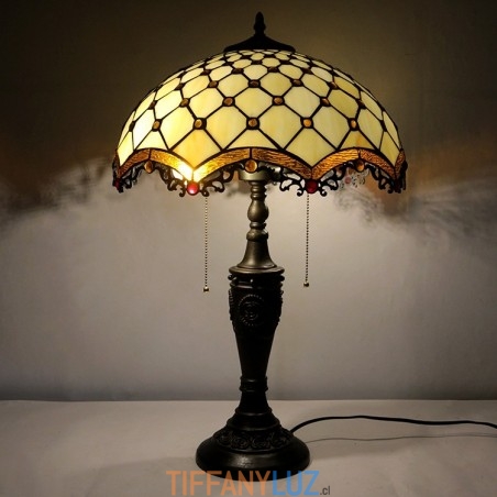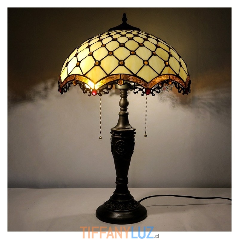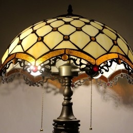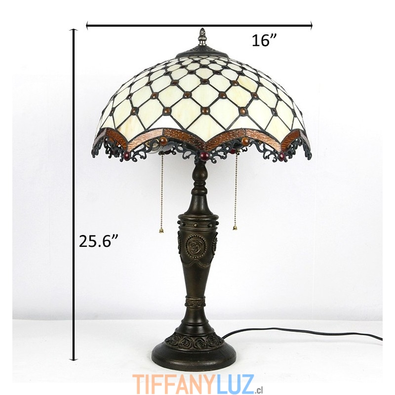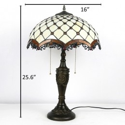 Lámpara de mesa Tiffany retro de 16 pulgadas con cuentas de vidrio de colores, luces de pantalla, lámpara de escritorio de vidrio hecha a mano