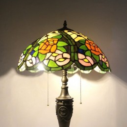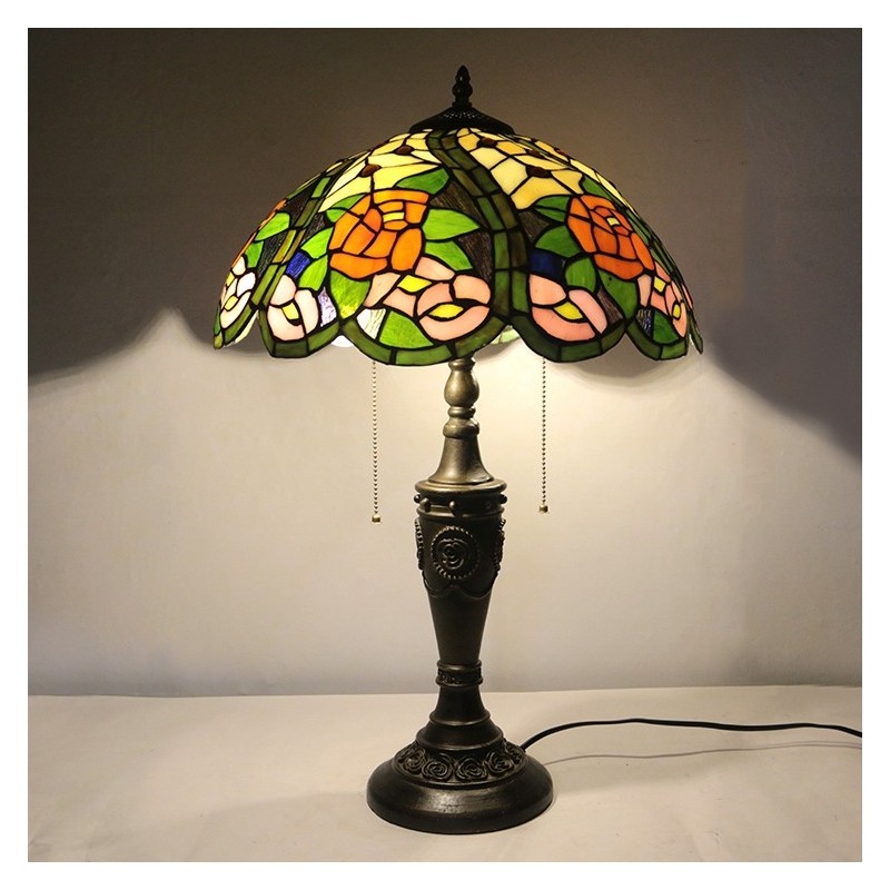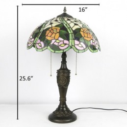 Lámpara de mesa Tiffany retro de 16 pulgadas con pantalla de vidrio teñido rojo y rosa amarilla, lámpara de escritorio de vidrio hecha a mano
