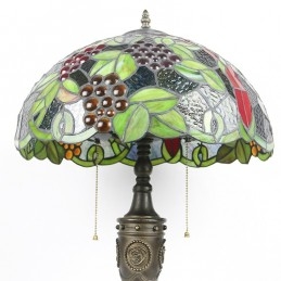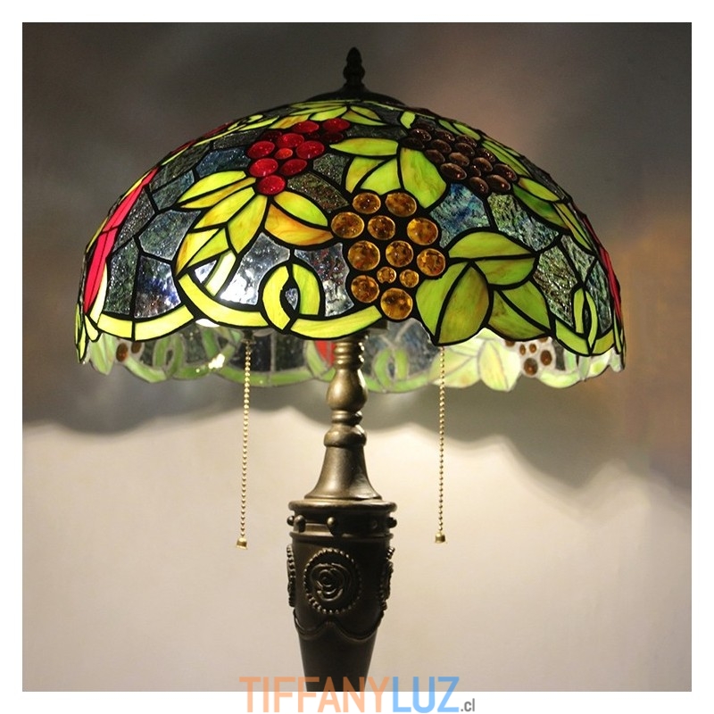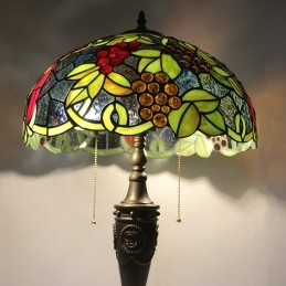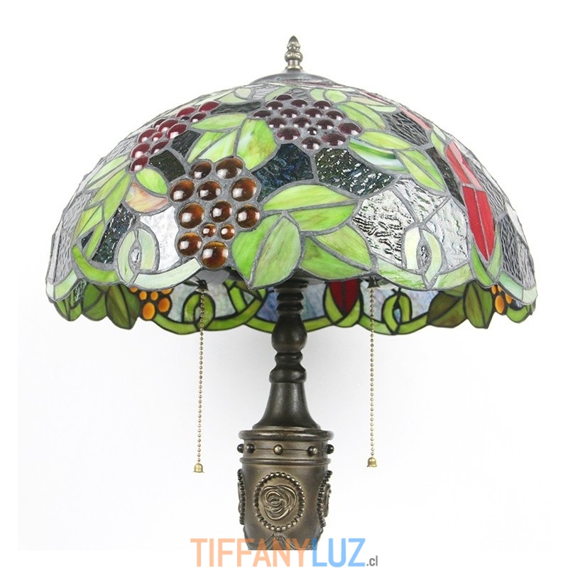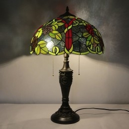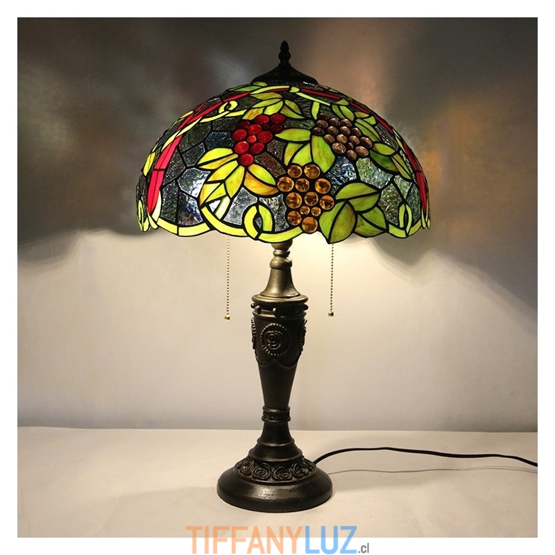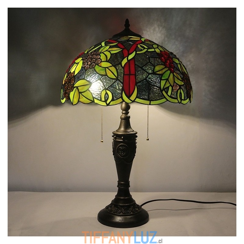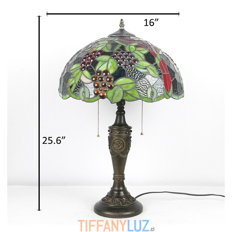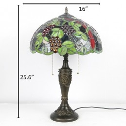 Lámpara de mesa retro Tiffany de 16 pulgadas con pantalla de vidrio teñido rojo y luces de uva, lámpara de escritorio de vidrio hecha a mano