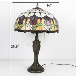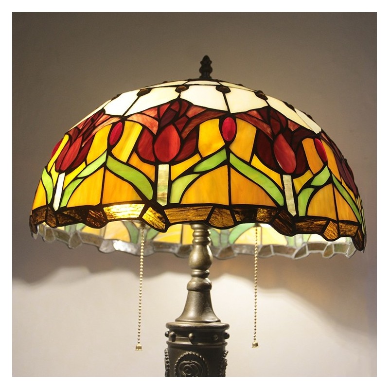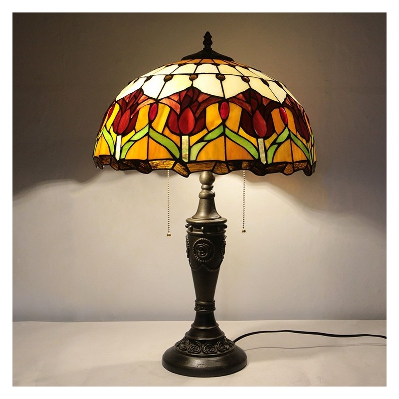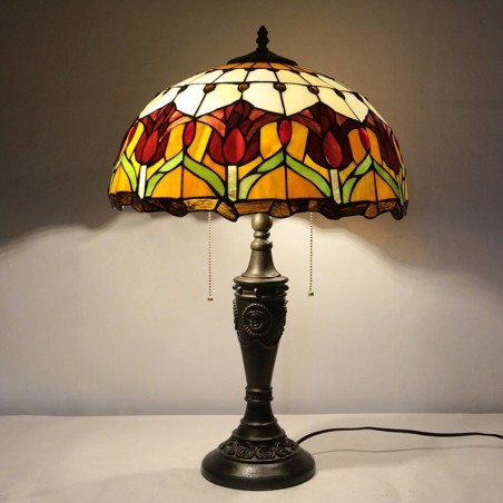 Lámpara de mesa Tiffany retro de 16 pulgadas con pantalla de tulipán de vidrio teñido rojo, lámpara de escritorio de vidrio hecha a mano