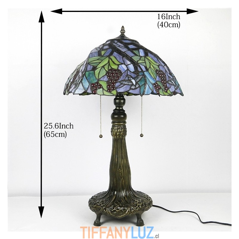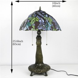 Lámpara Tiffany de 16 pulgadas, lámpara de mesa con vitrales, estilo pantalla de uva, luz de lectura para escritorio
