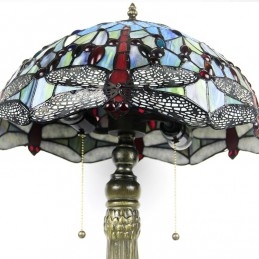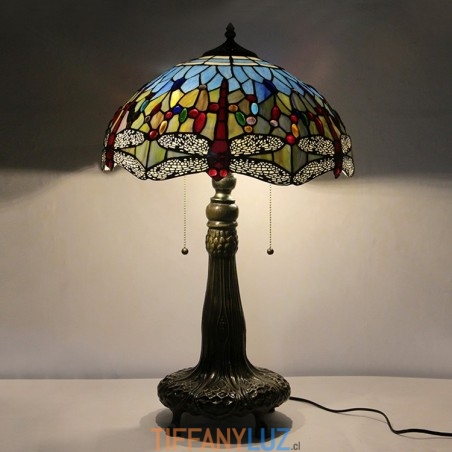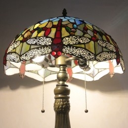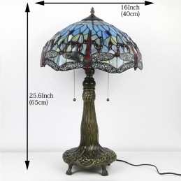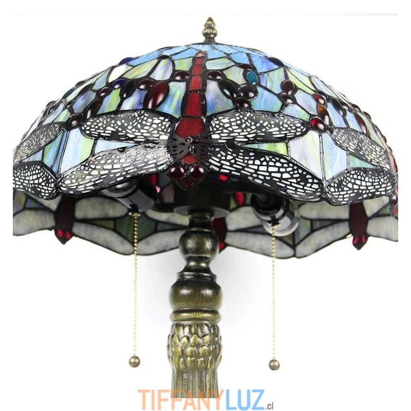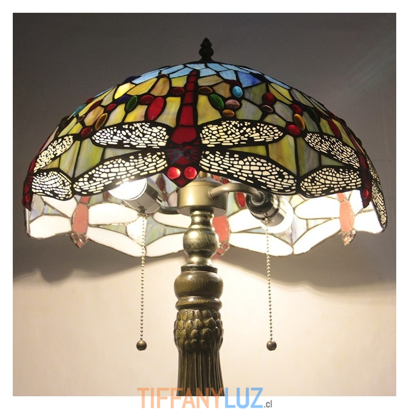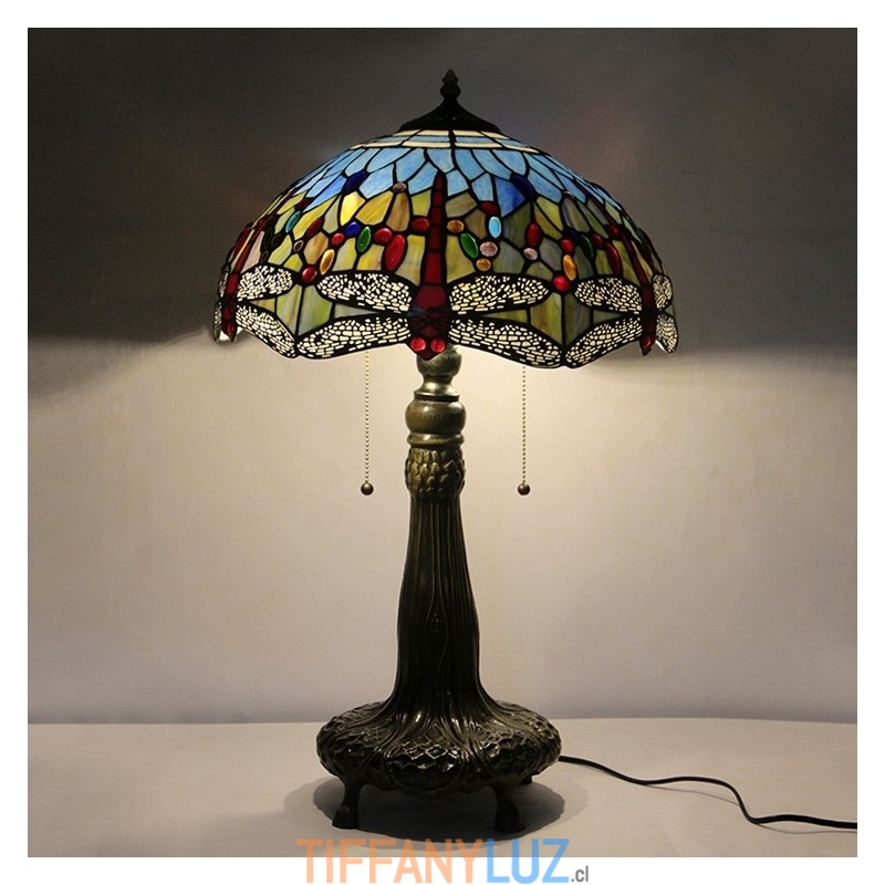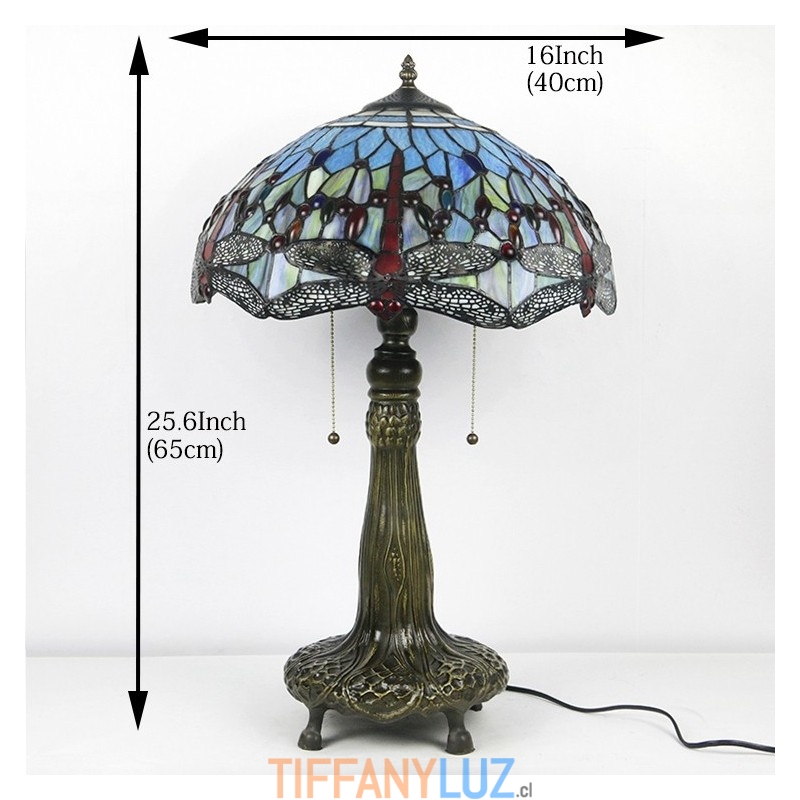 Lámpara Tiffany de 16 pulgadas, lámpara de mesa de vidrio de colores, lámpara de escritorio estilo libélula roja, luz de lectura, decoración, iluminación