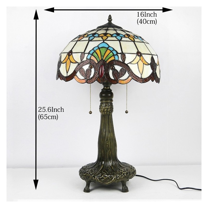 Lámpara Tiffany de 16 pulgadas, lámpara de mesa de vidrio de colores, estilo barroco, lámpara de lectura para escritorio, iluminación decorativa