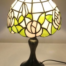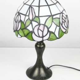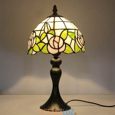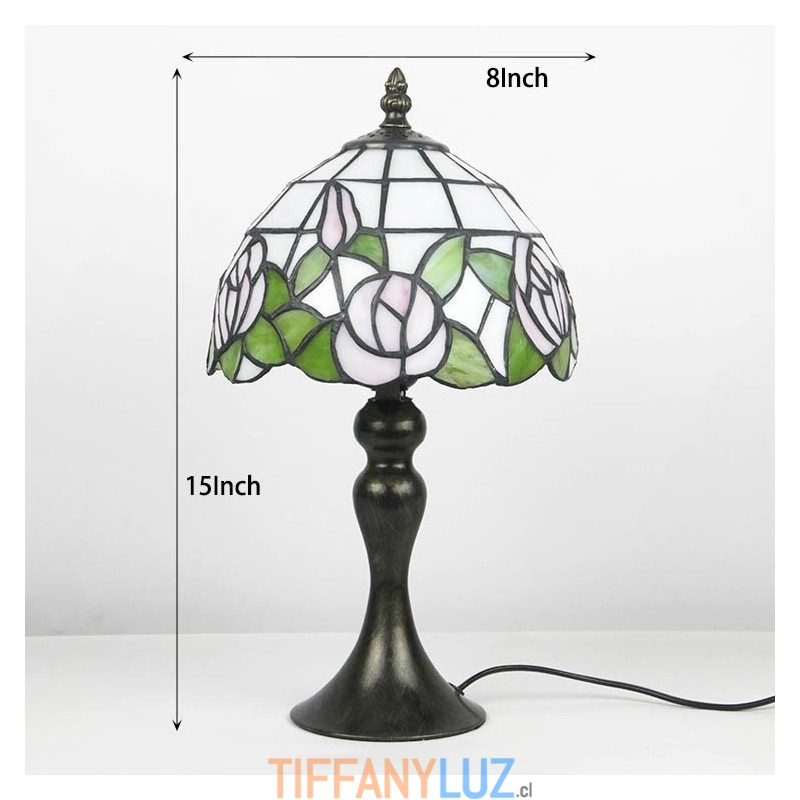 Lámpara de escritorio estilo Tiffany con vitrales, color rosa, para lectura de mesa, luz de noche, 8 x 15 pulgadas