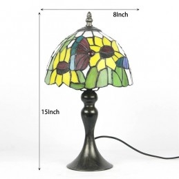 Lámpara de escritorio estilo Tiffany con vitrales, forma de mariposa y girasol, luz de noche para lectura de mesa, ancho 8 x 15 pulgadas