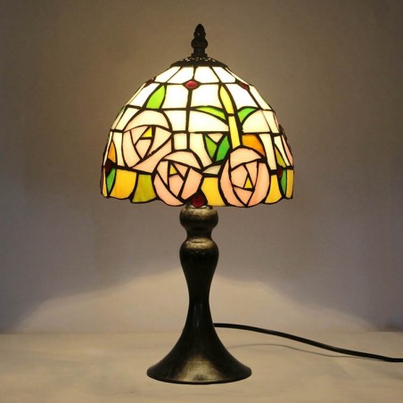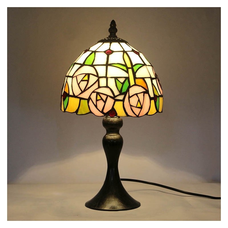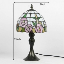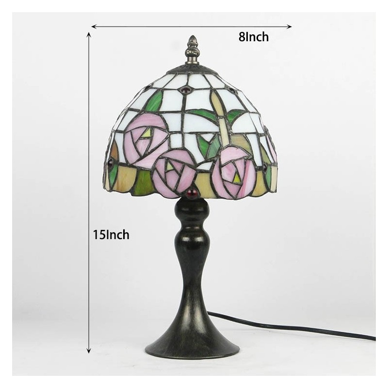 Lámpara de escritorio estilo Tiffany con vitrales, color rosa, con diseño floral, para lectura de mesa, luz de noche, ancho 8 x alto 15 pulgadas