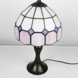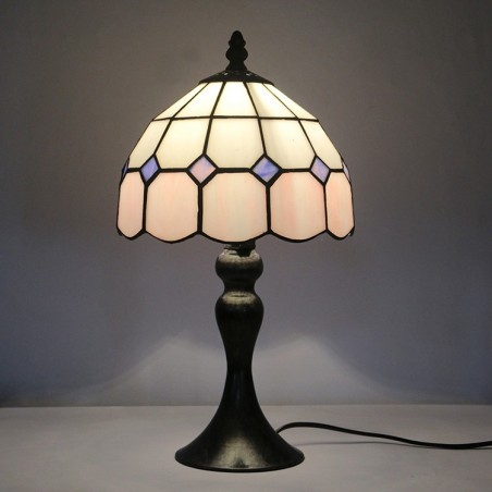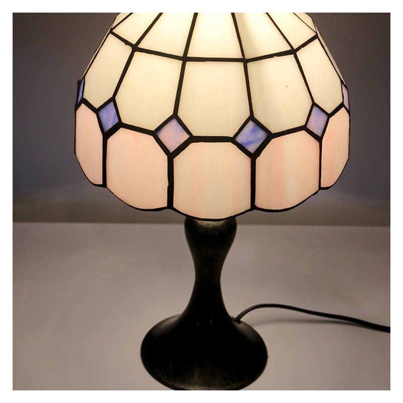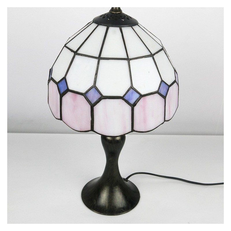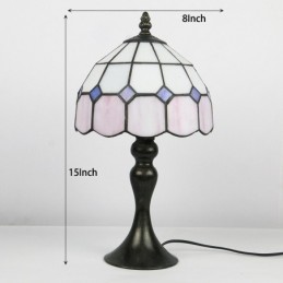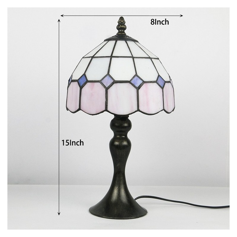 Lámpara de escritorio estilo Tiffany con vitrales, color rosa, con rejilla, para lectura de mesa, luz de noche, ancho 8 x alto 15 pulgadas