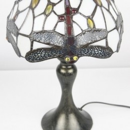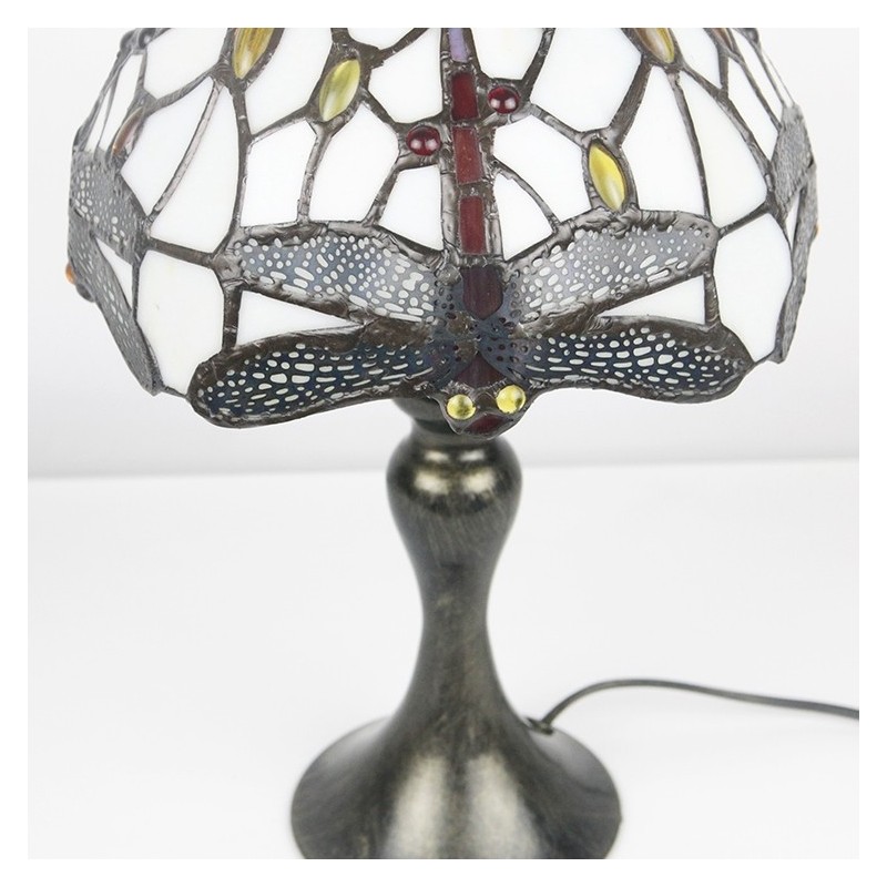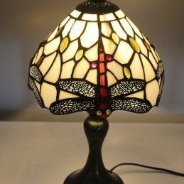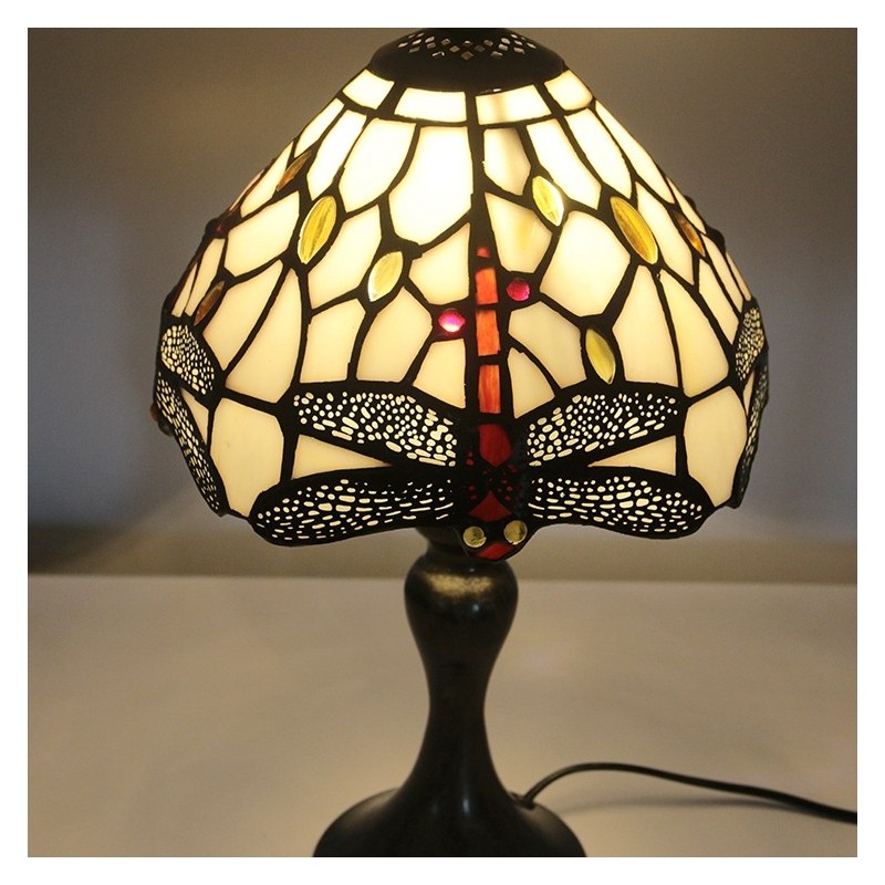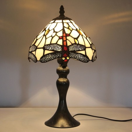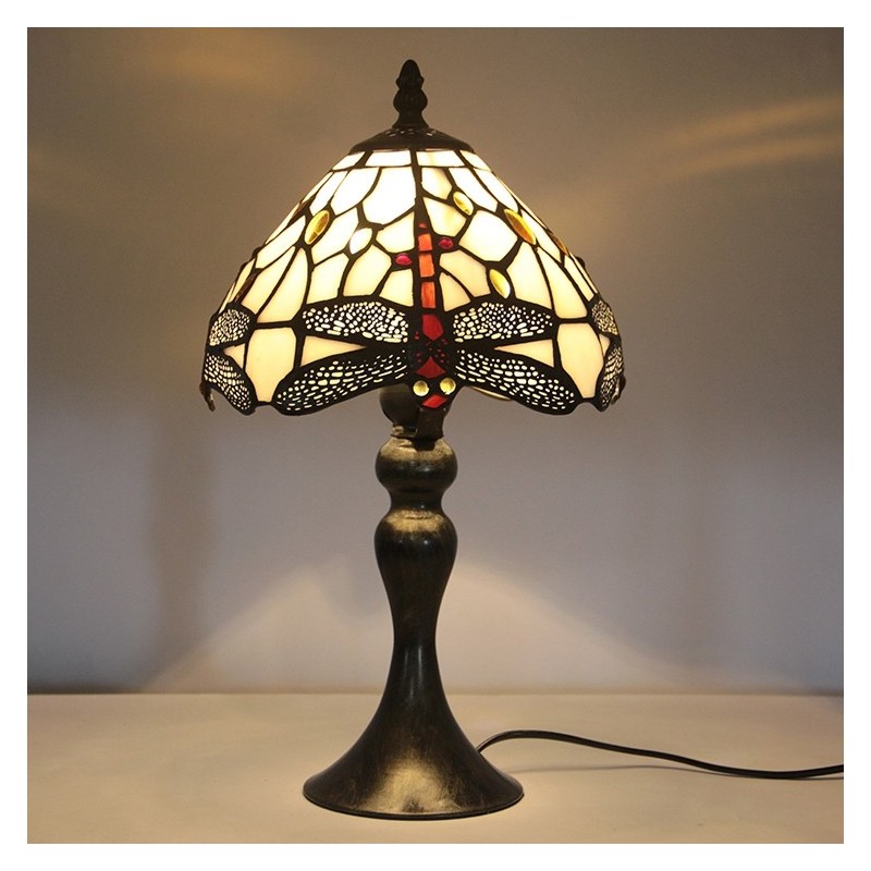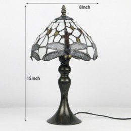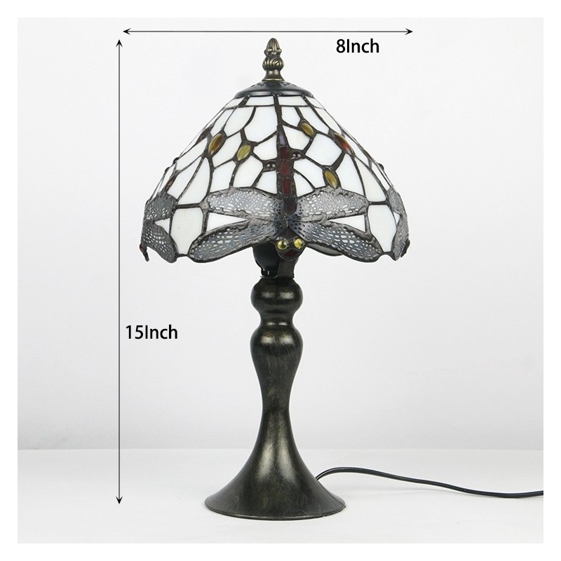 Lámpara de escritorio estilo Tiffany con vitrales, pantalla de libélula roja, luz de noche para lectura de mesa, ancho 8 x 15 pulgadas
