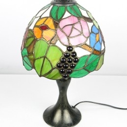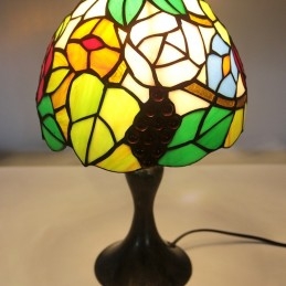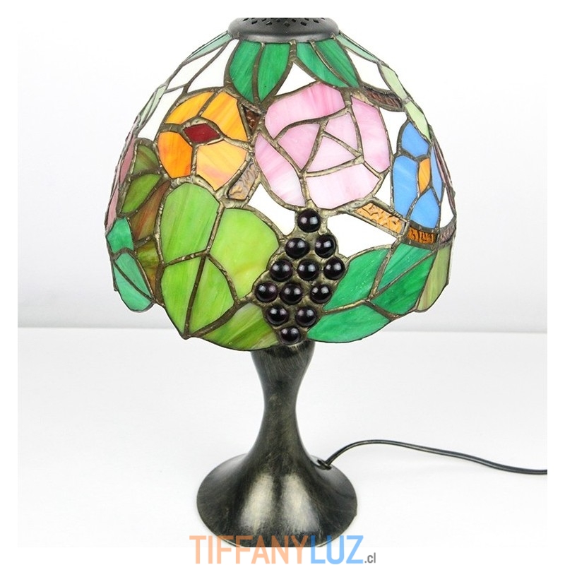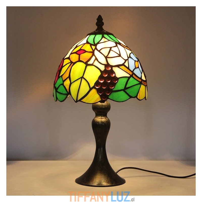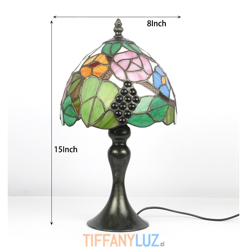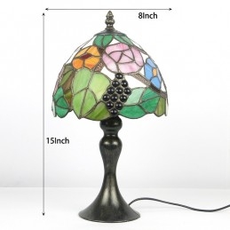 Lámpara de escritorio estilo vitral Tiffany con pantalla de uva, luz de noche para lectura de mesa, ancho 8 x 15 pulgadas