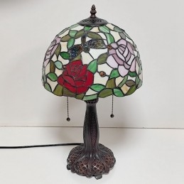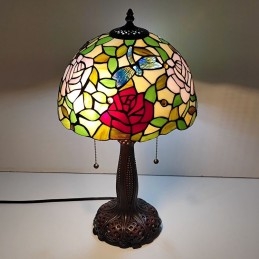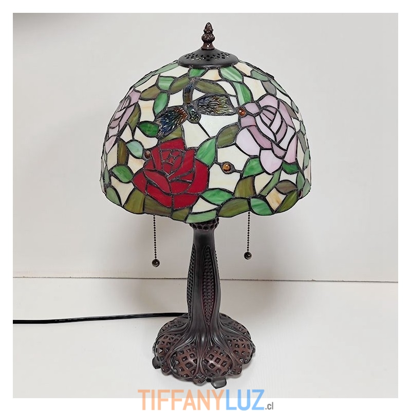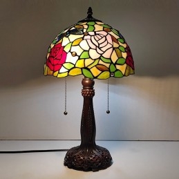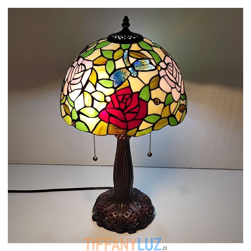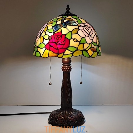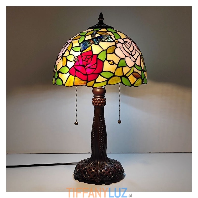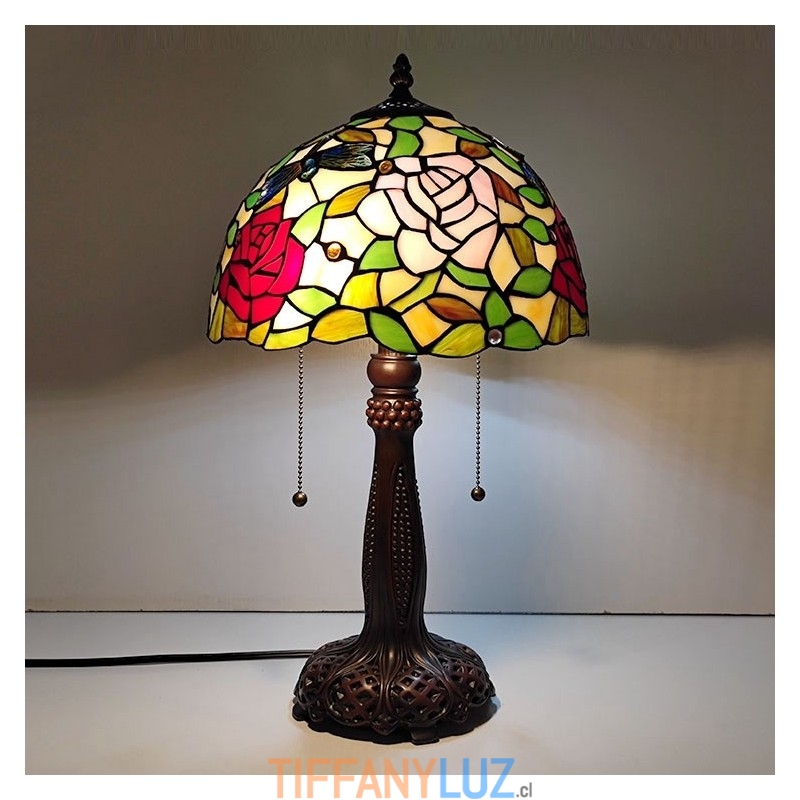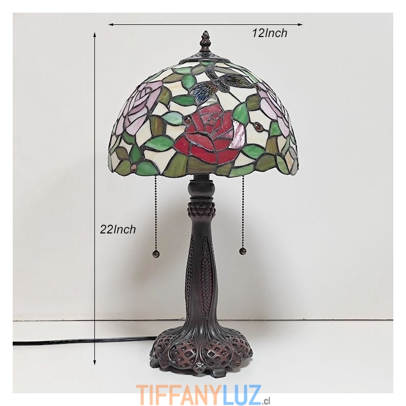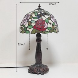 Lámpara de escritorio estilo Tiffany con vitrales, pantalla de flor de rosa, luz de noche para lectura de mesa, ancho 12 x alto 22 pulgadas