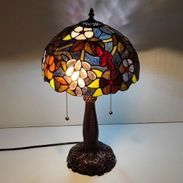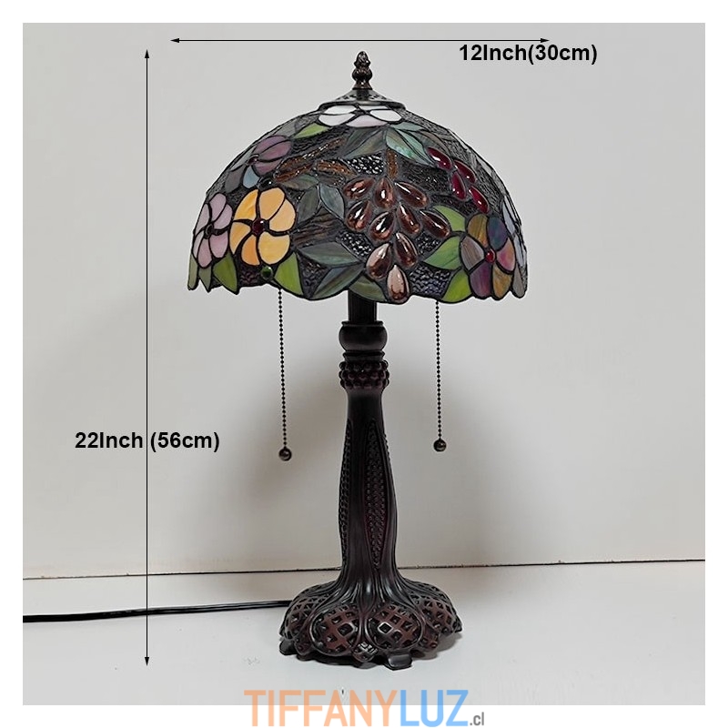 Lámpara de escritorio estilo vitral Tiffany con hermosas flores, luz de noche para lectura de mesa, ancho 12 x alto 22 pulgadas