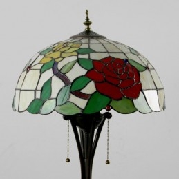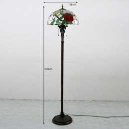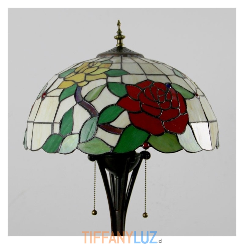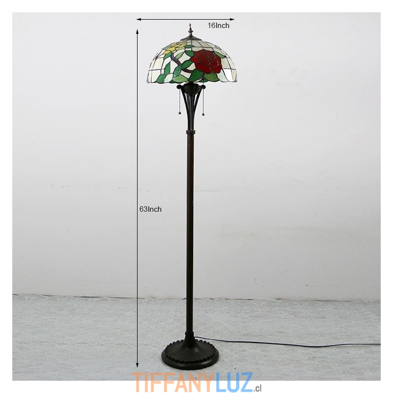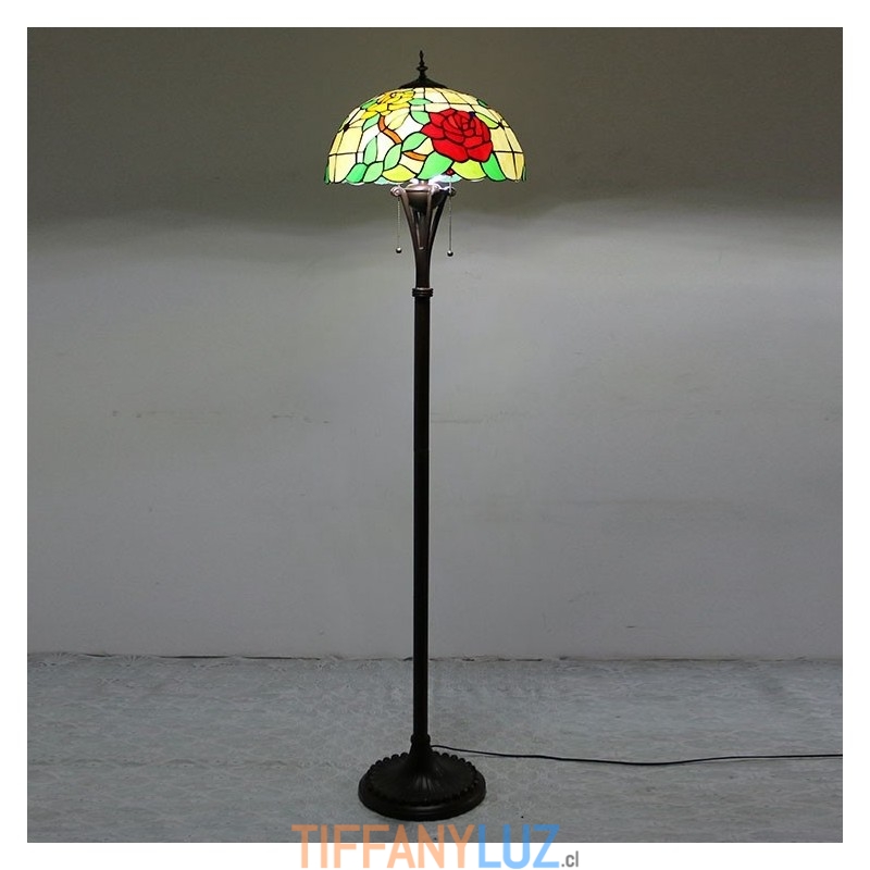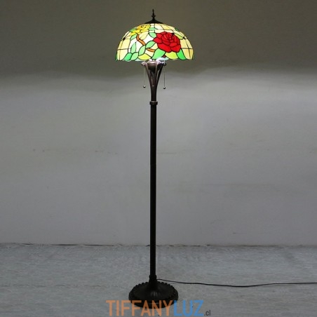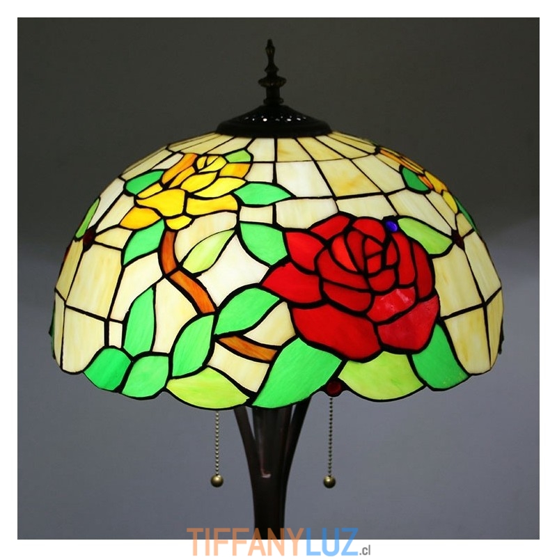 Lámpara de pie estilo Tiffany con vitrales en forma de rosa roja y pantalla de 16 pulgadas de ancho hecha a mano