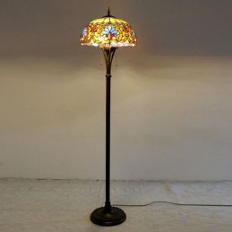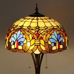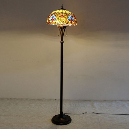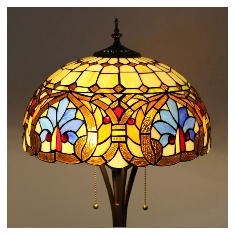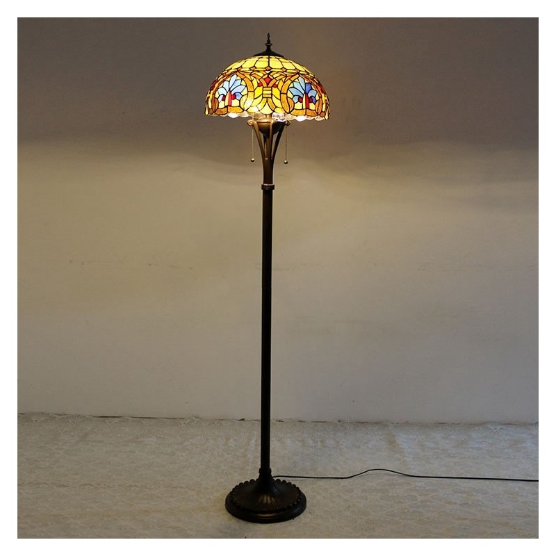 Lámpara de pie de vidrio de colores estilo Tiffany con pantalla de 16 pulgadas de ancho, hecha a mano, estilo barroco