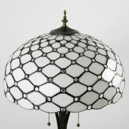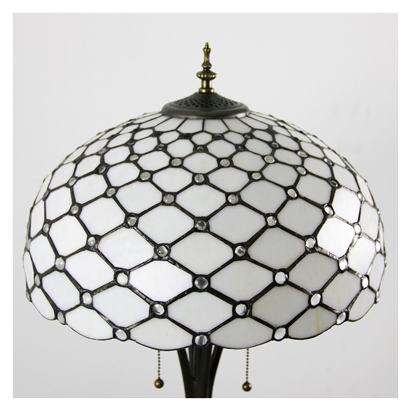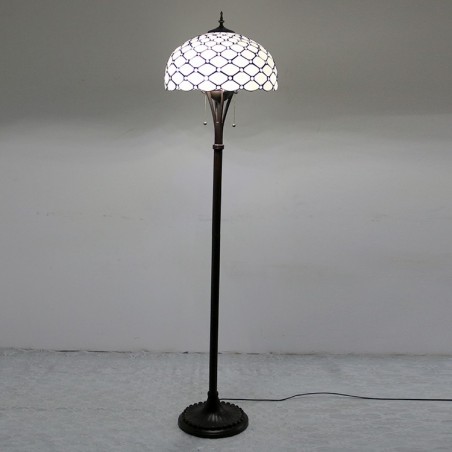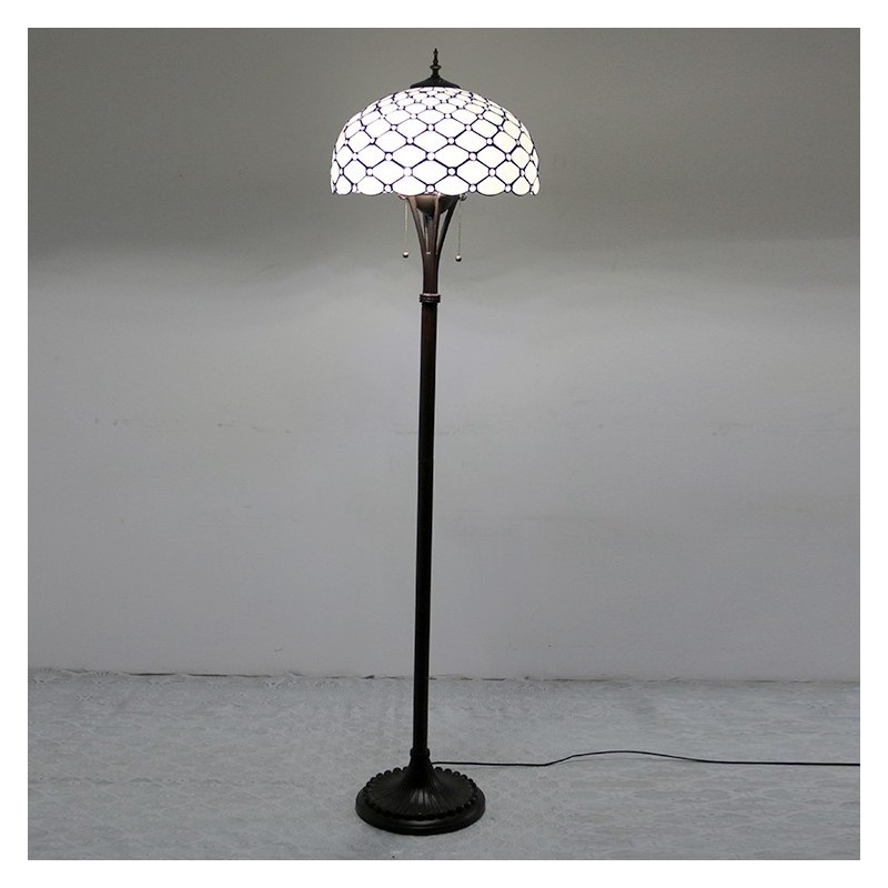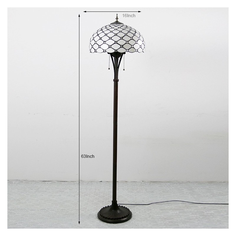 Lámpara de pie de vidrio de colores estilo Tiffany con pantalla de cuentas hechas a mano de 16 pulgadas de ancho y base de metal