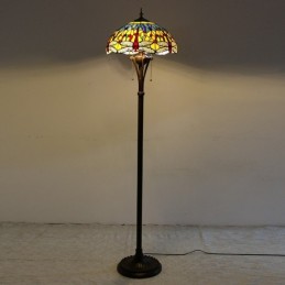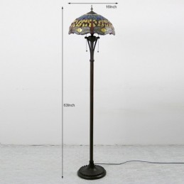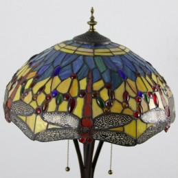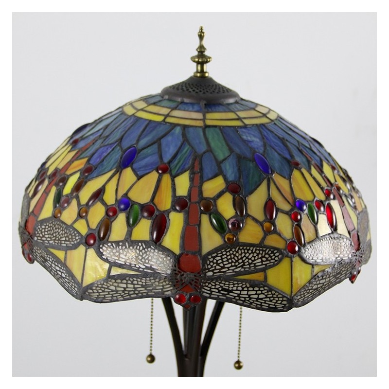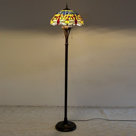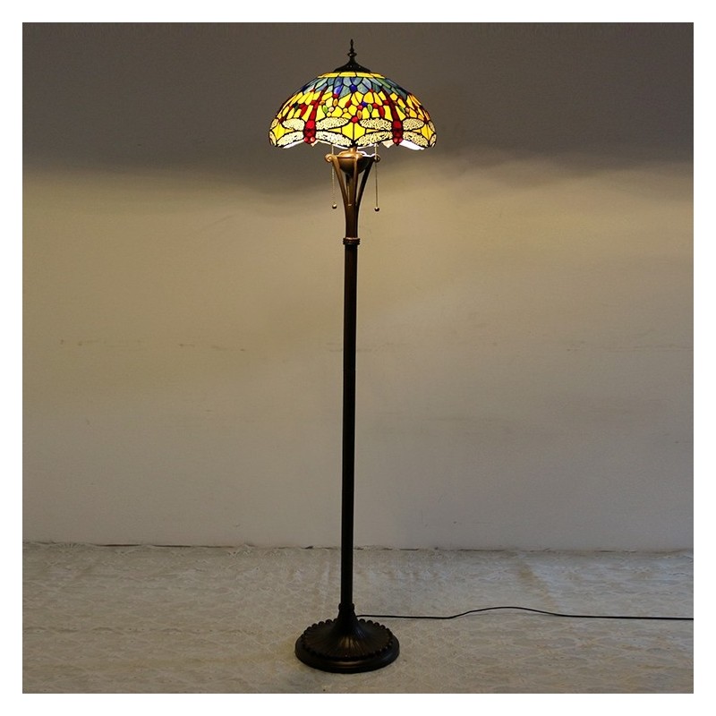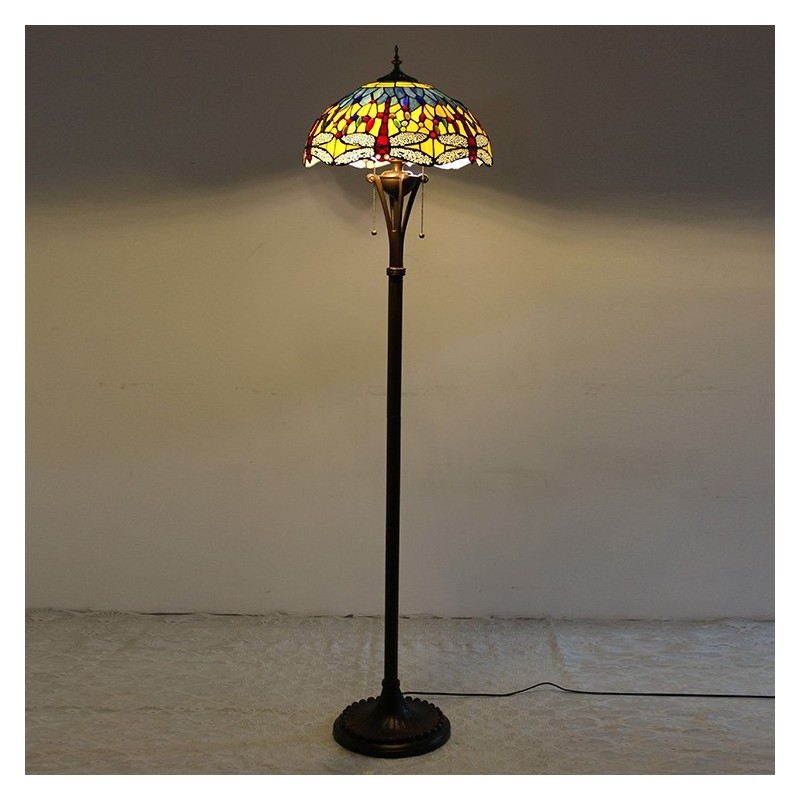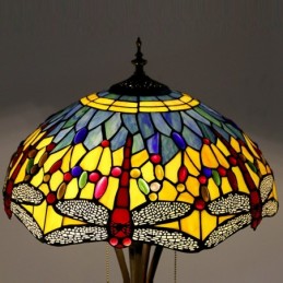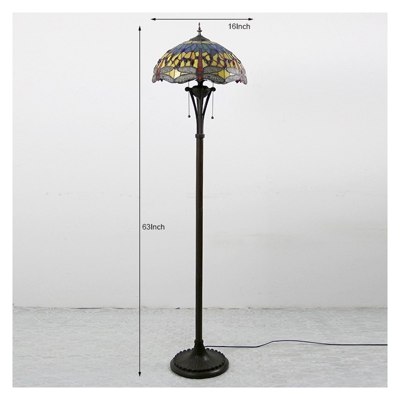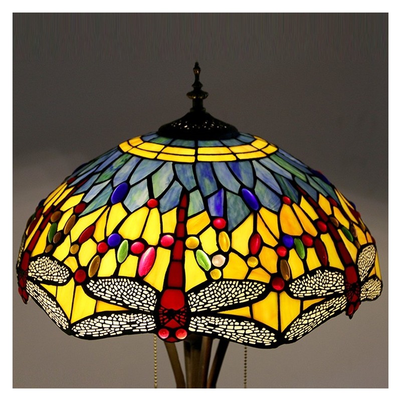 Lámpara de pie de vidrio de color estilo Tiffany con libélula roja y base de metal hecha a mano de 16 pulgadas de ancho
